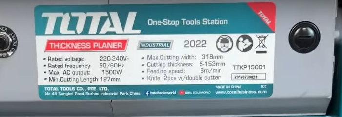CEPILLO DE BANCO ELÉCTRICO DE 1500w INDUSTRIAL TOTAL