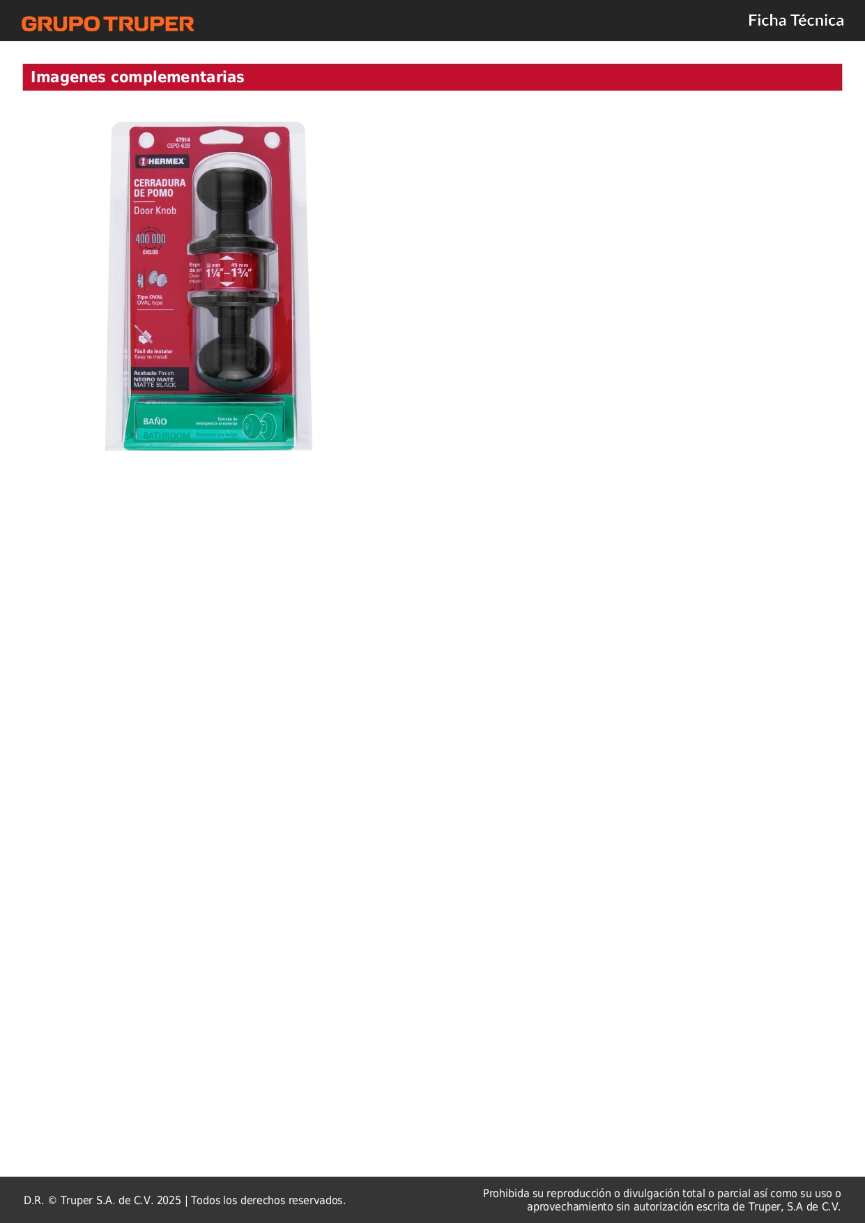-Para colocación en puertas con espesor de 1-1/4" a 1-3/4" (32 a 45 mm)