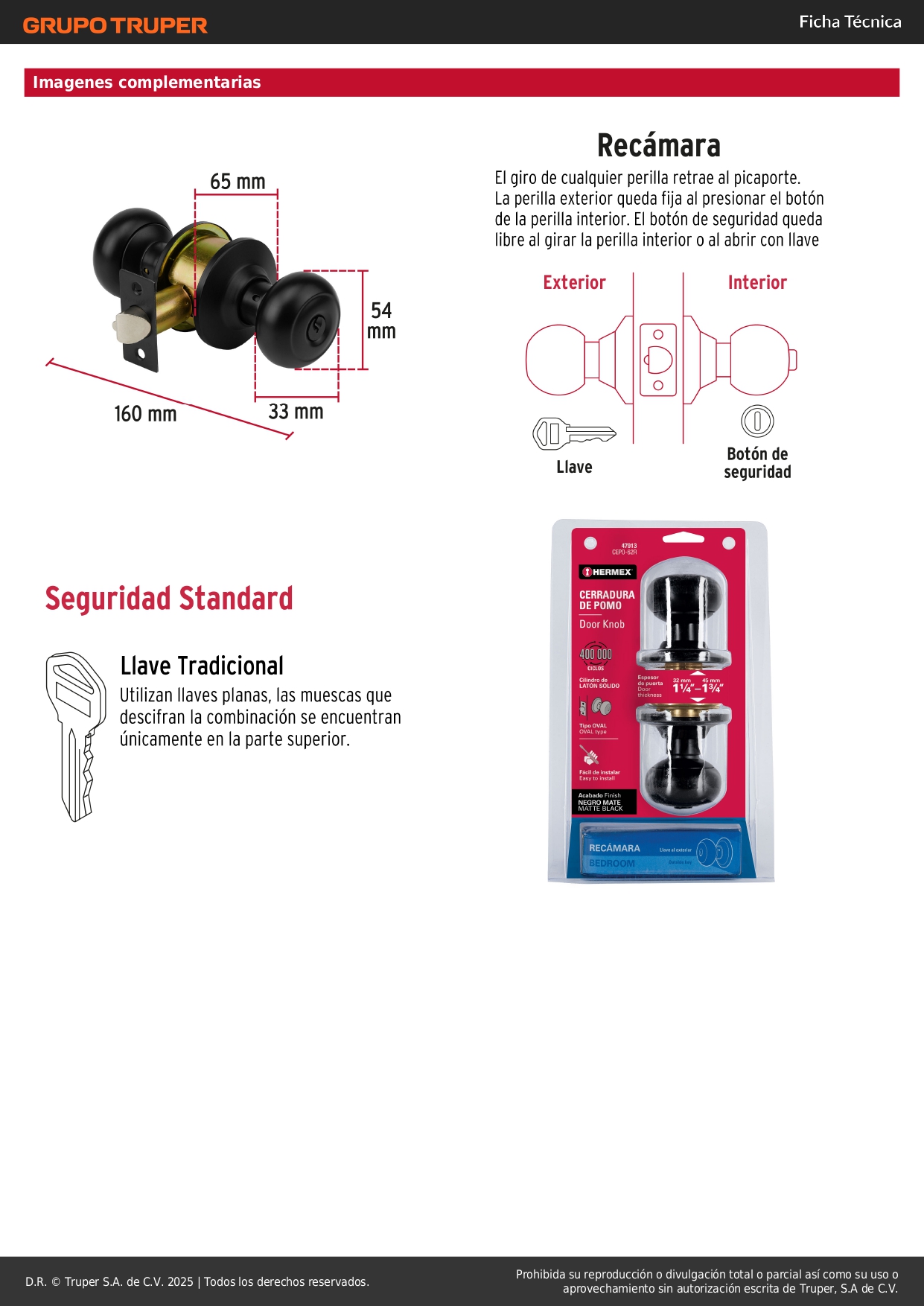 -Cerrojo con llave al exterior y botón de seguridad al interior