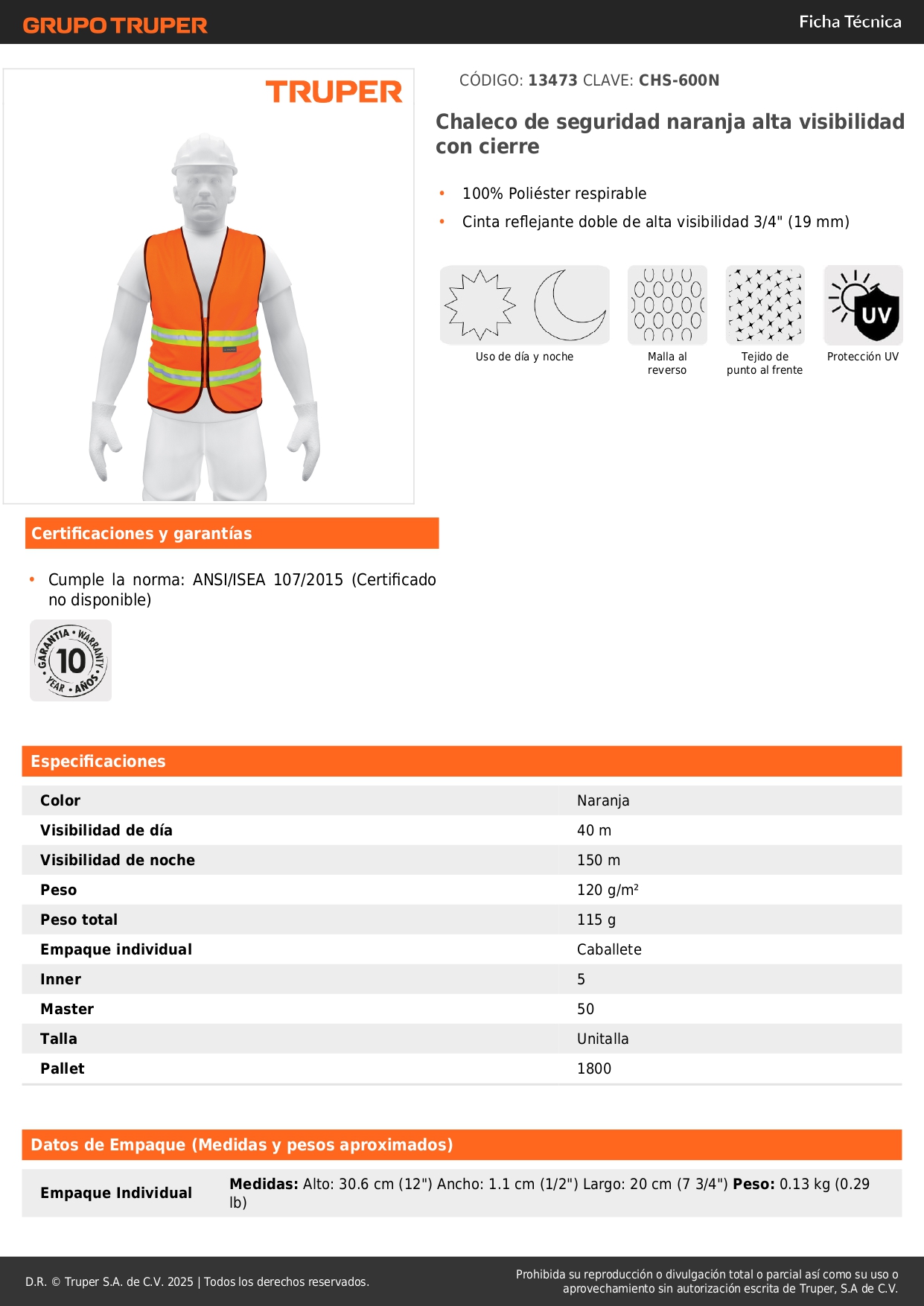 Chaleco de seguridad naranja alta visibilidad con cierre Truper Stock por sucursal Stock por sucursal S/ 12.00 cantidad Agregar al carro Avísame cuando llegue -100% Poliéster respirable-Cinta reflejante doble de alta visibilidad 3/4" (19 mm)