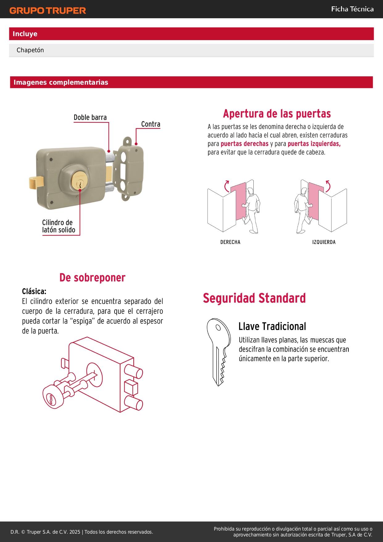 Chapa cerradura de sobreponer derecha alta segurida Hermex