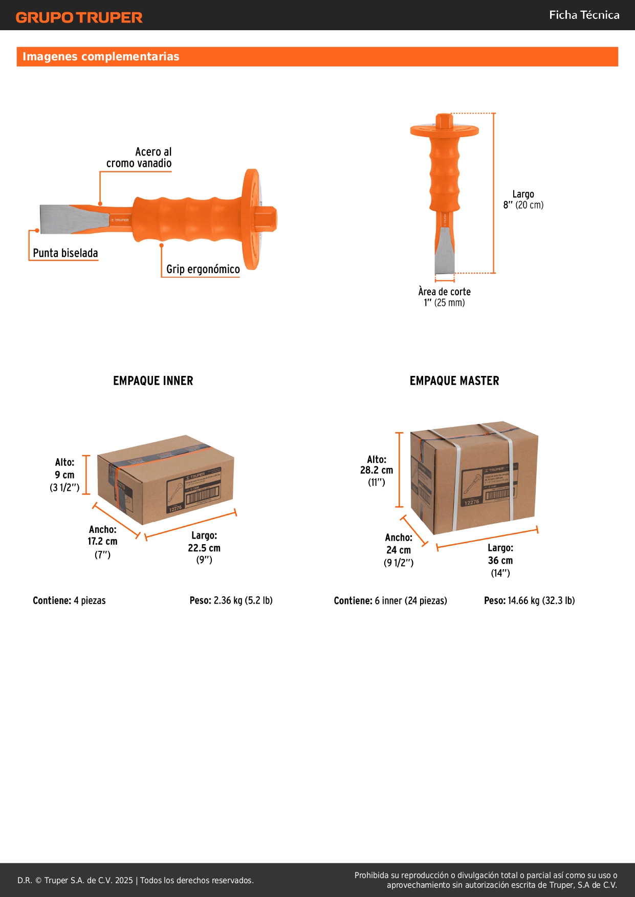 Cincel de corte frío 1 x 8´´ con grip, Truper