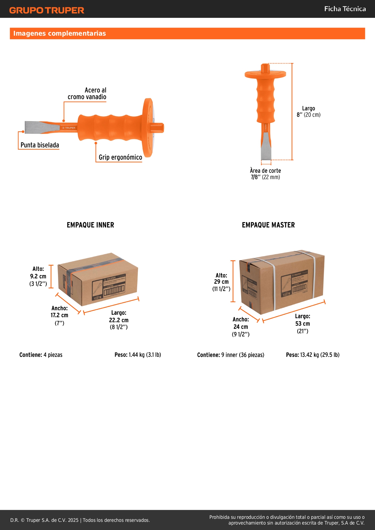 Cincel de corte frío 3/4 x 8'' con grip Truper