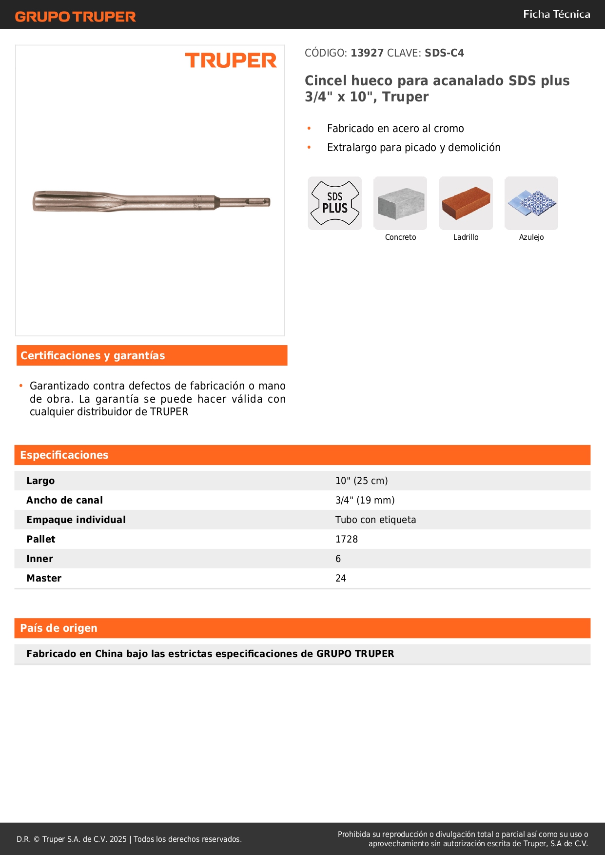 Cincel hueco para acanalado 3/4 Truper
