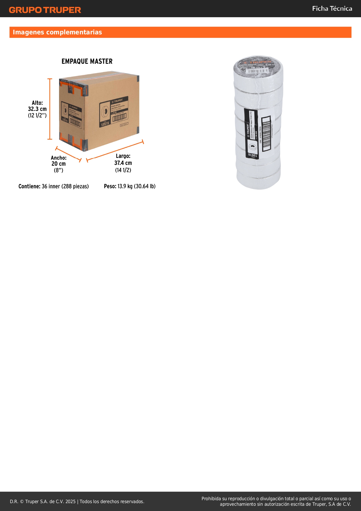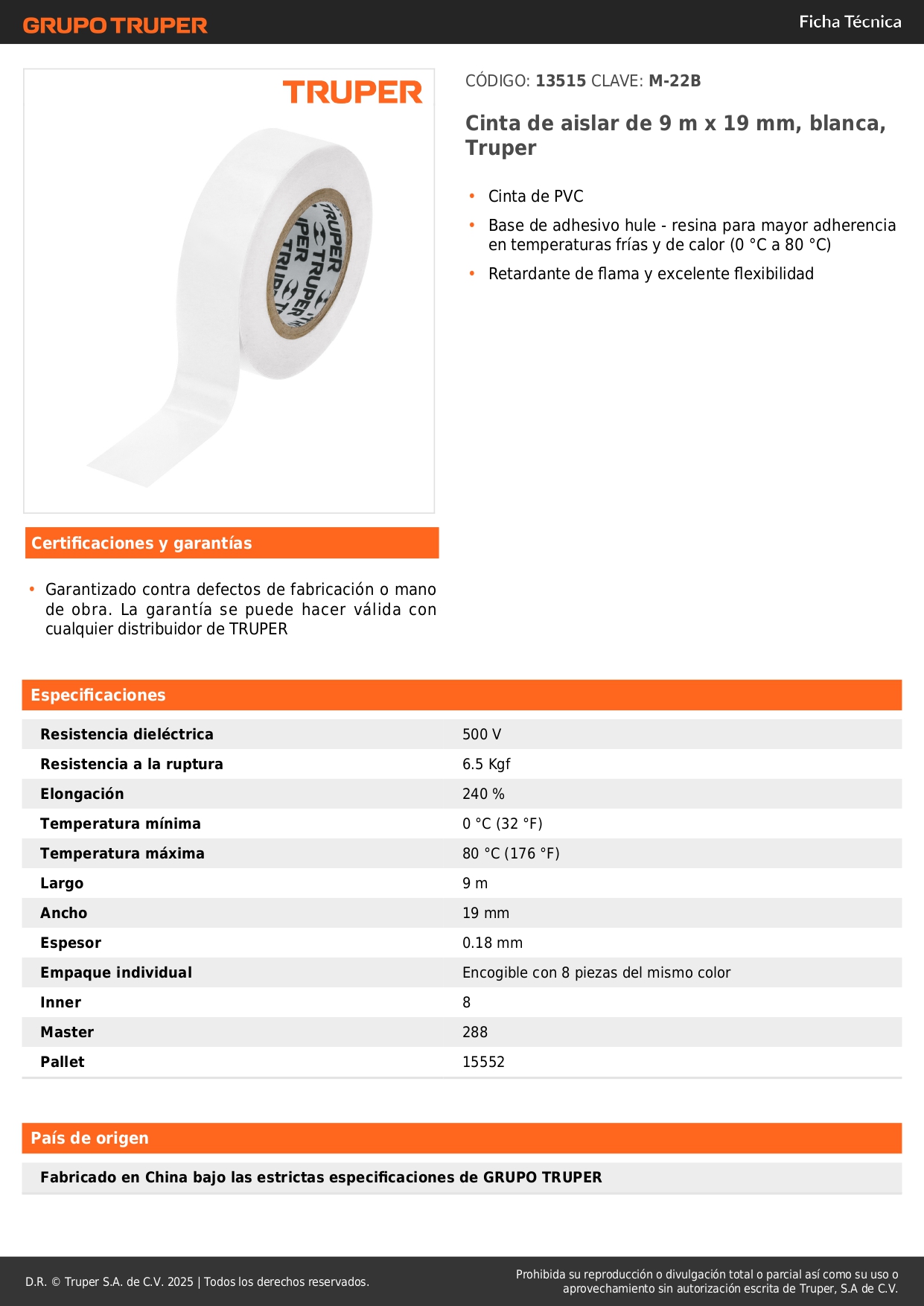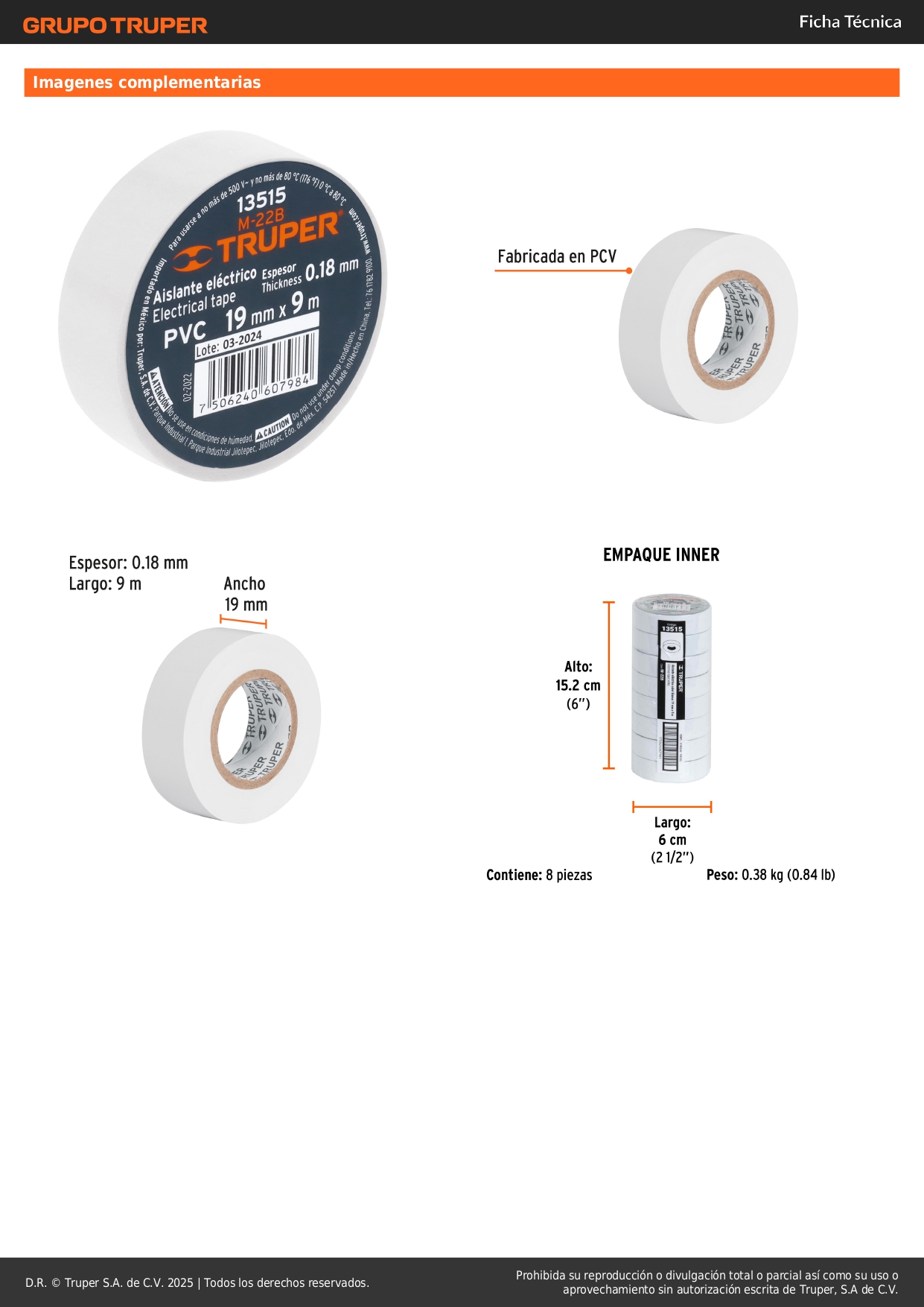 Cinta aislante de 9 m x 19 mm, blanca, Truper