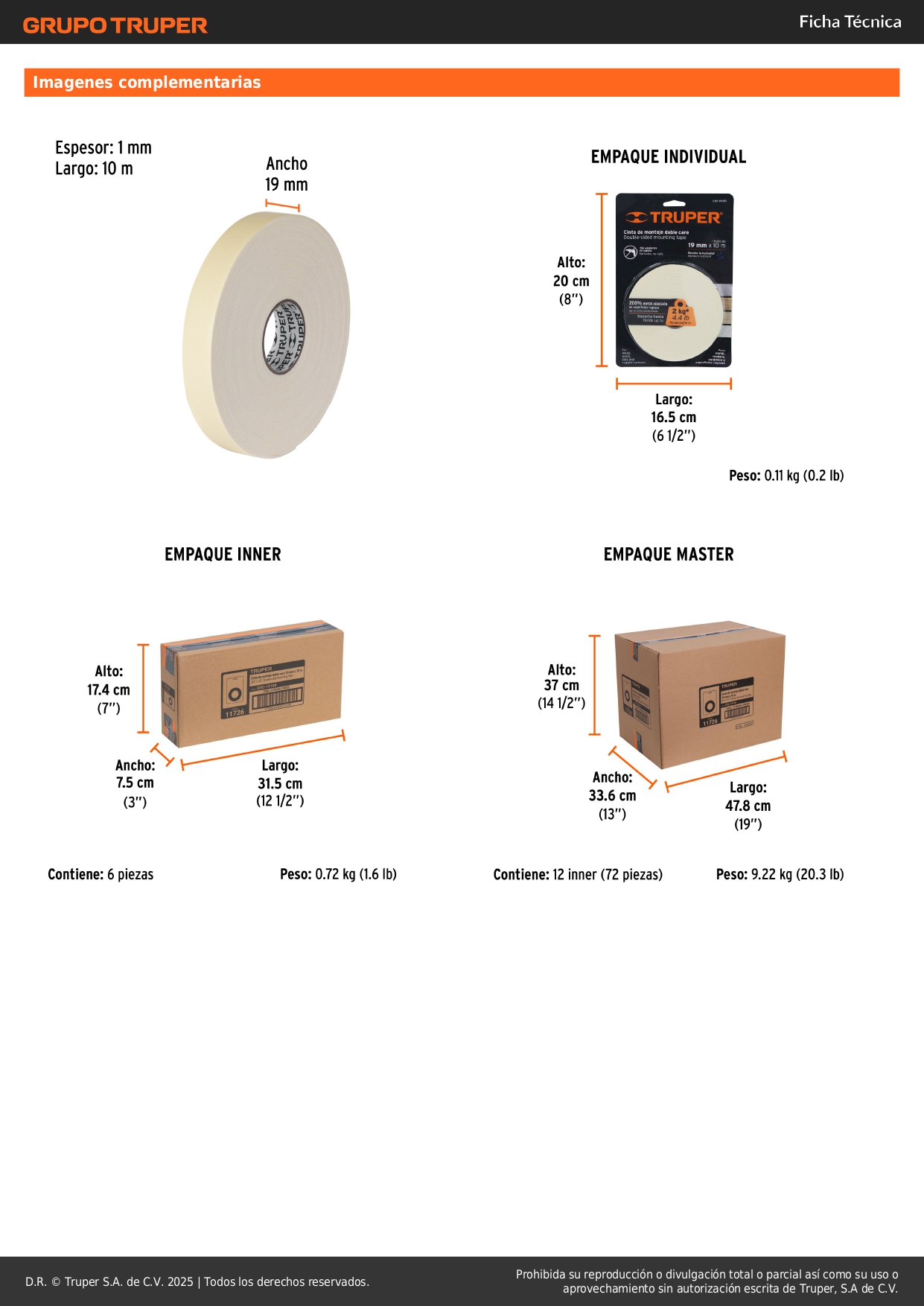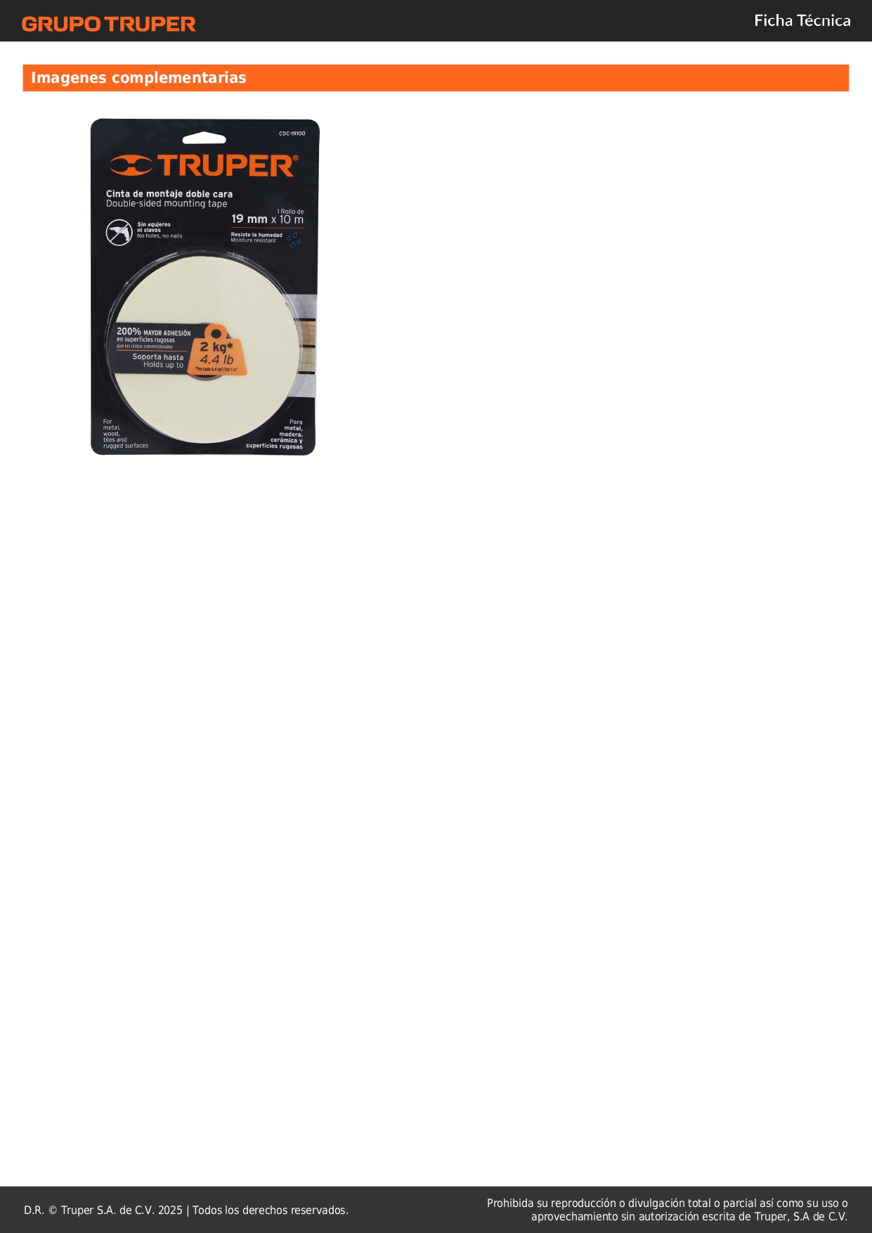 Cinta doble contacto de 19 mm x 10 m Truper