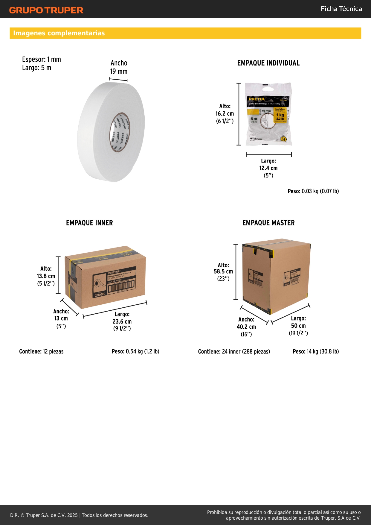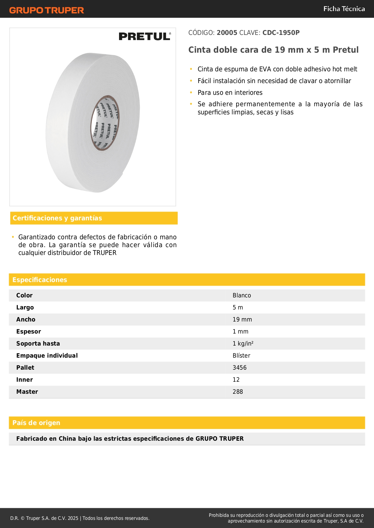 Cinta doble contacto de 19 mm x 5 m Pretul