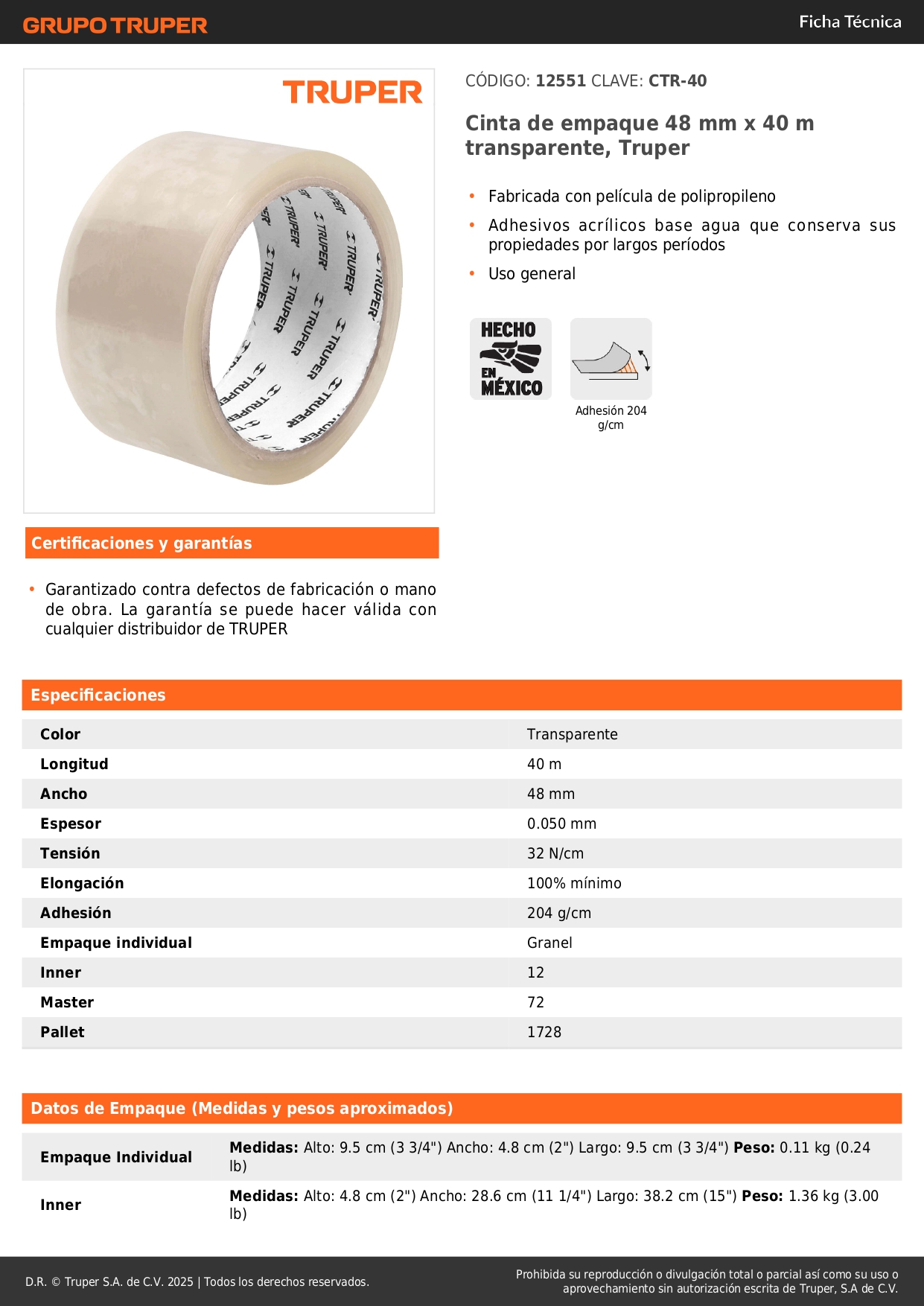 Cinta para embalaje 48 mm x 40 m transparente, Truper