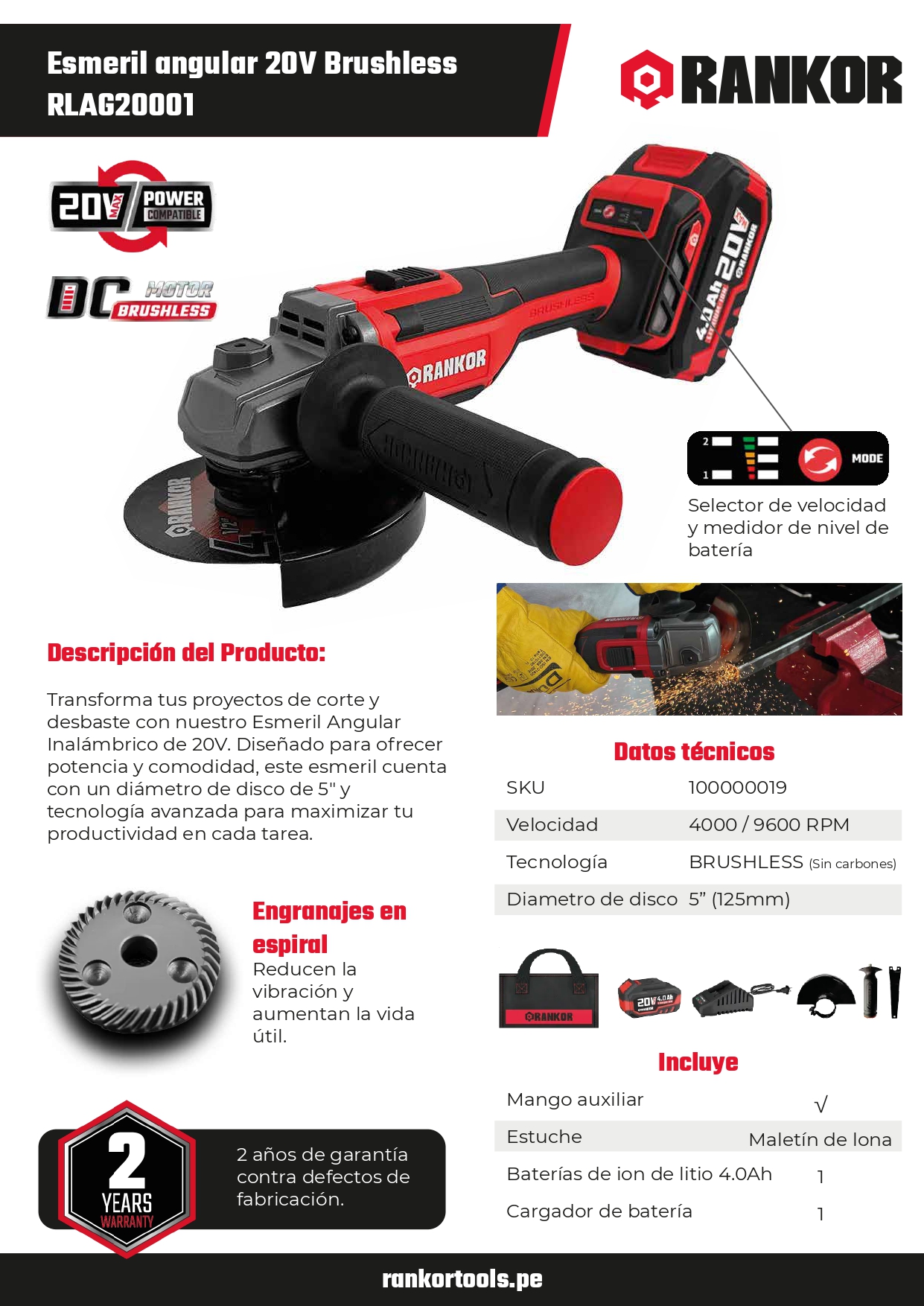 Transforma tus proyectos de corte y desbaste con nuestro Esmeril Angular Inalámbrico de 20V. Diseñado para ofrecer potencia y comodidad, este esmeril cuenta con un diámetro de disco de 5″ y tecnología avanzada para maximizar tu productividad en cada tarea.