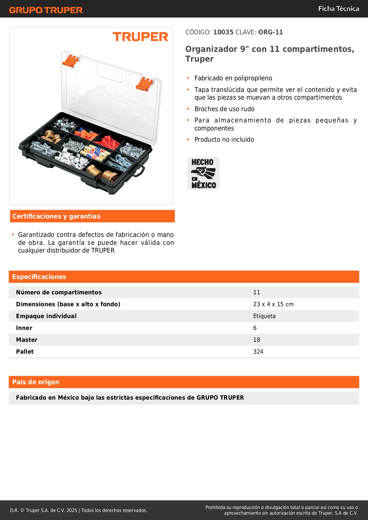 Fabricado en polipropileno