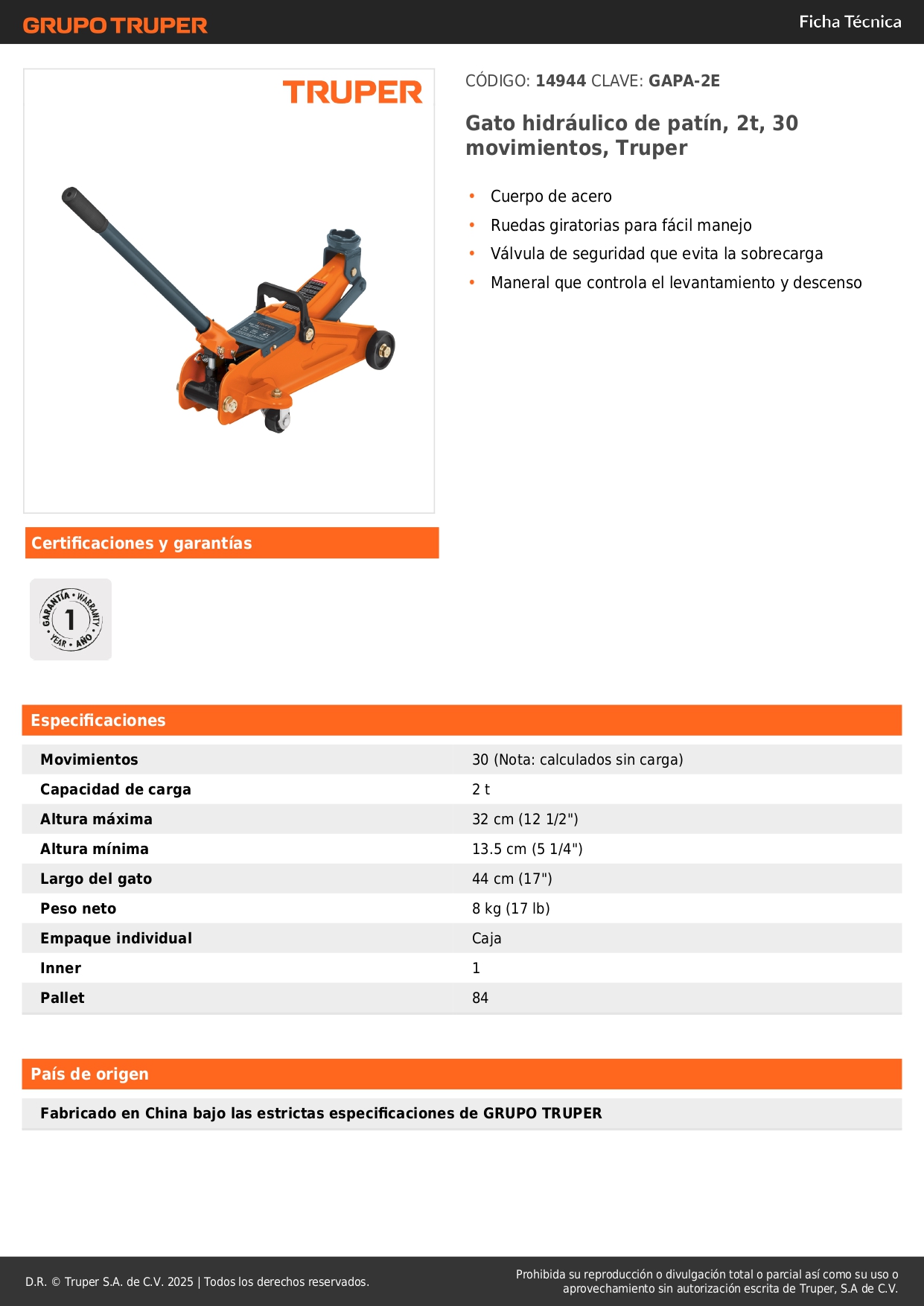 - Capacidad de carga 2 t