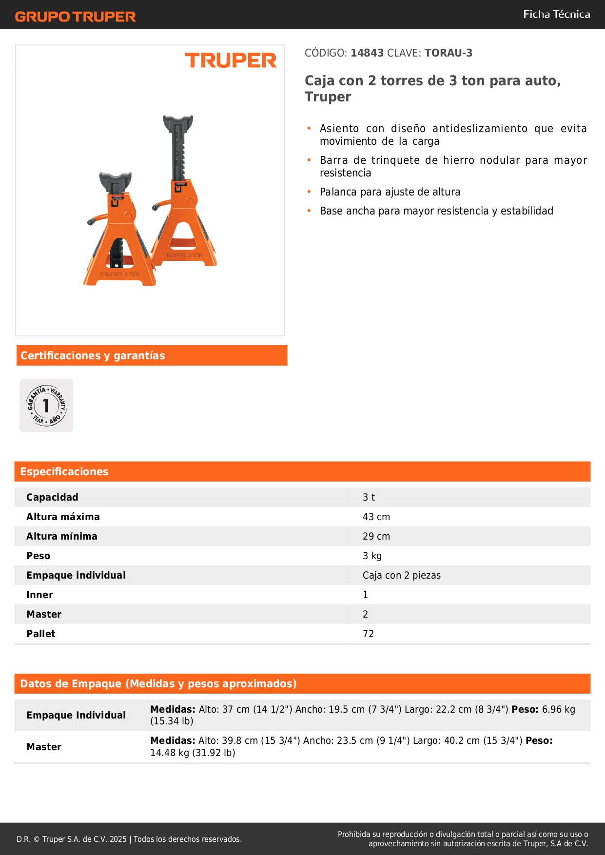 Combo gata hidráulica 2 toneladas + caballete 3 toneladas Truper