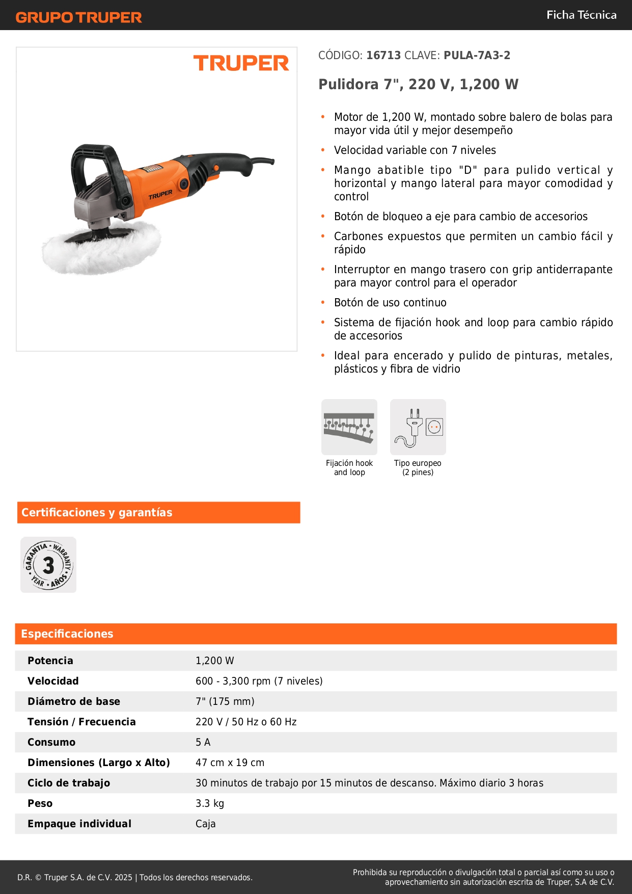 *Mango tipo "D" para en pulido vertical y horizontal.