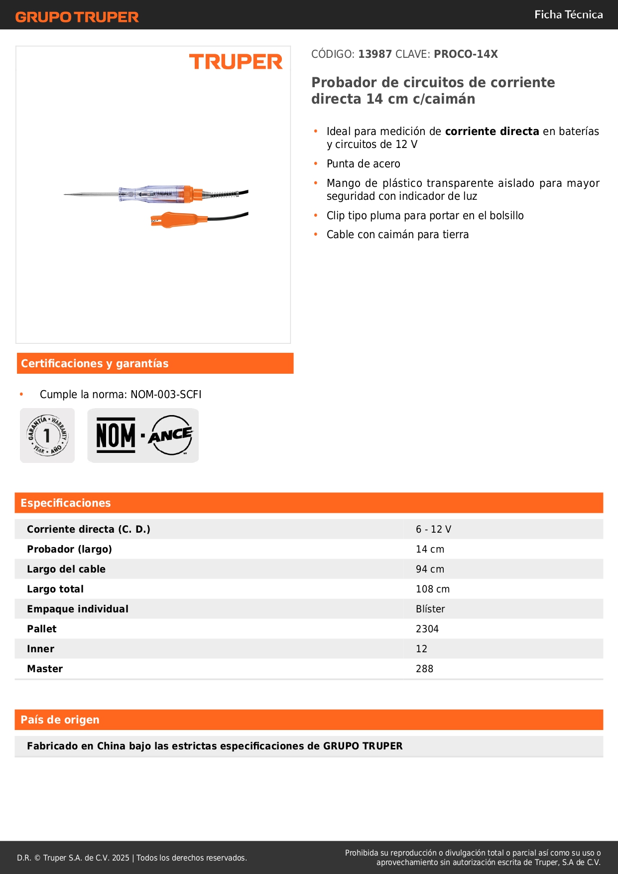 CARACTERISTICAS DEL PROBADOR DE CORRIENTE