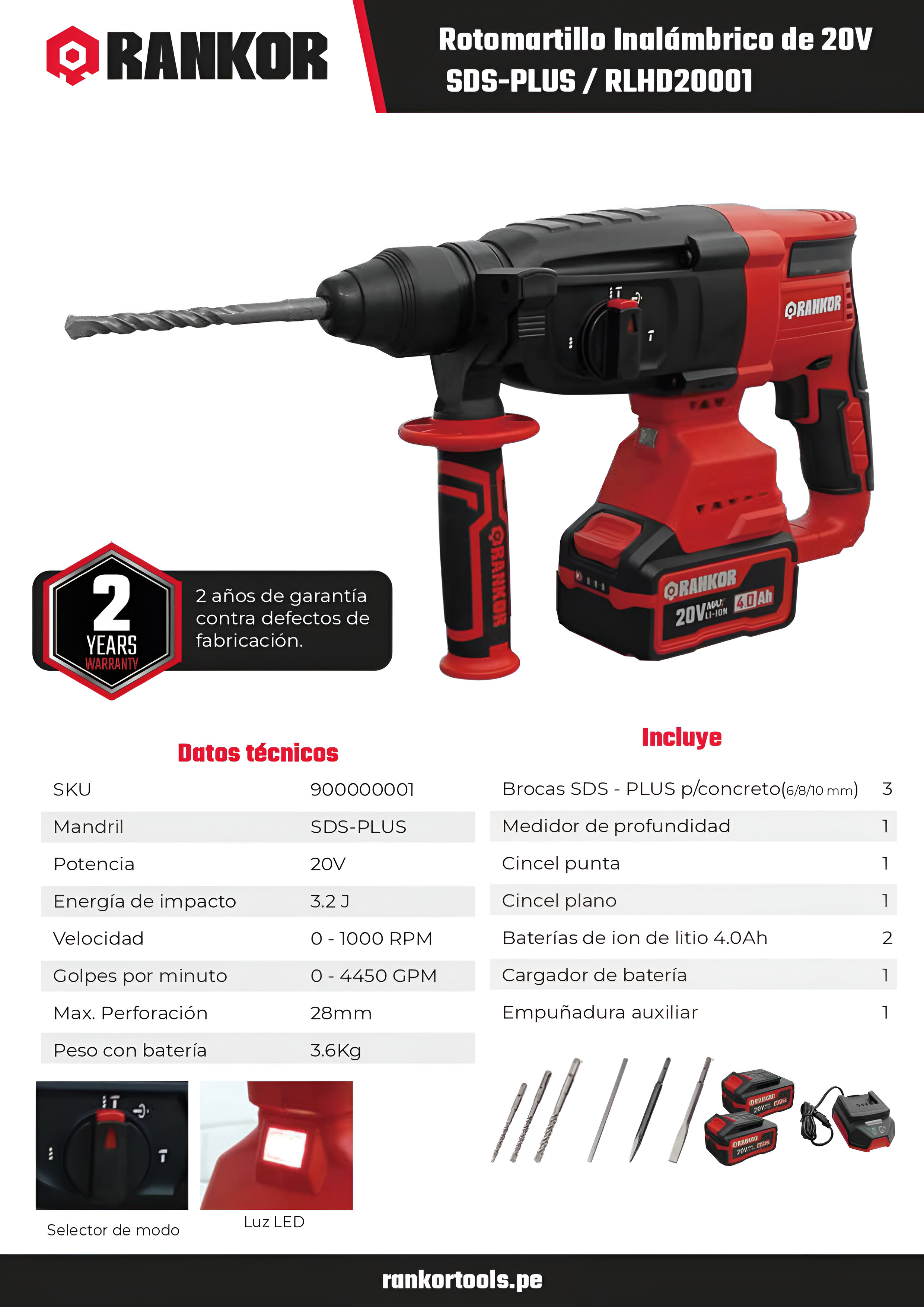 Combo Rotomartillo + amoladora inalambrica industrial Rankor