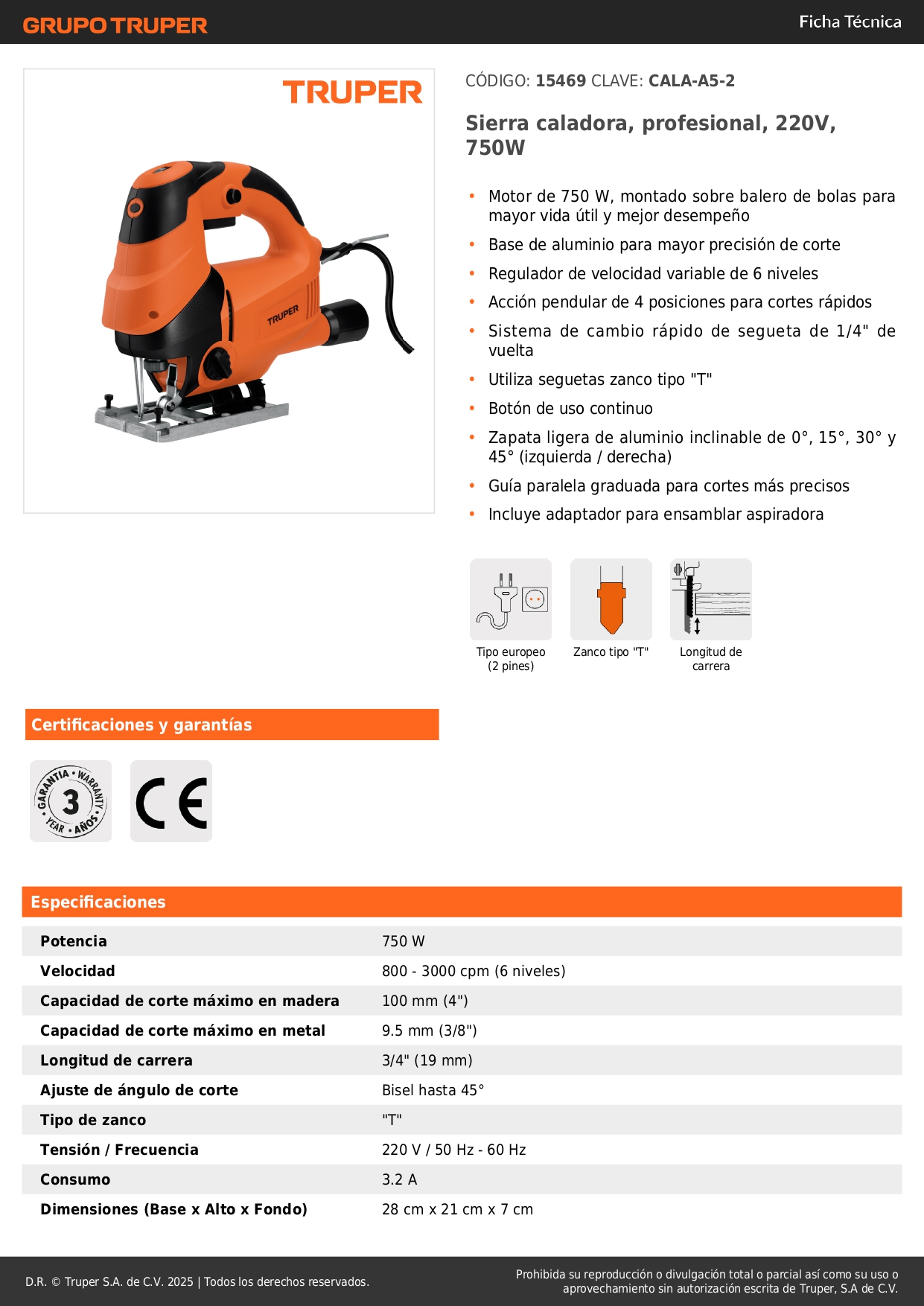 Control de acción pendular; que varia el Angulo de corte del segueta con el fin de aumentar la eficiencia del corte.