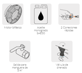 • Motor bifásico con bobinas de cobre, 2X mayor durabilidad que las de aluminio