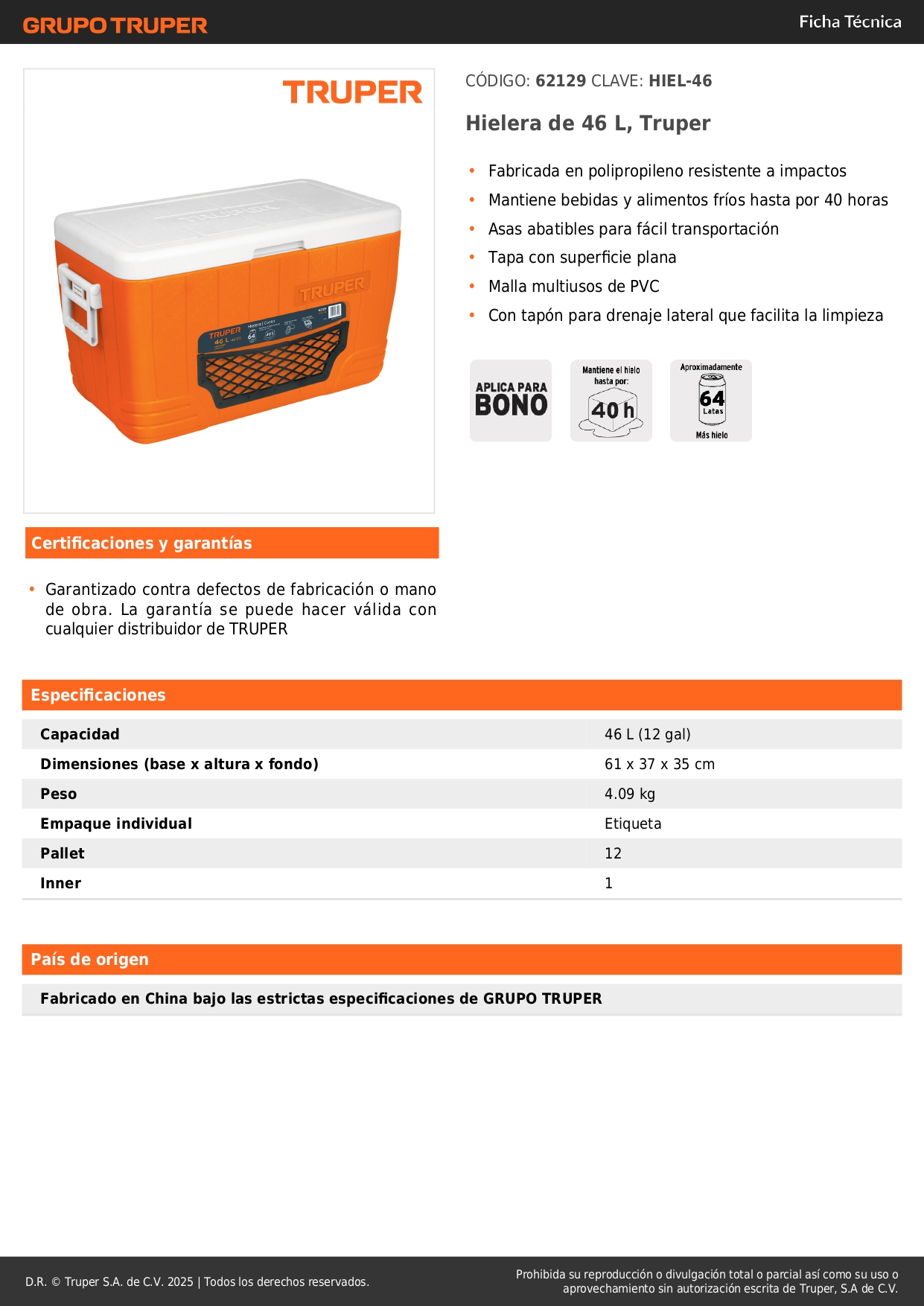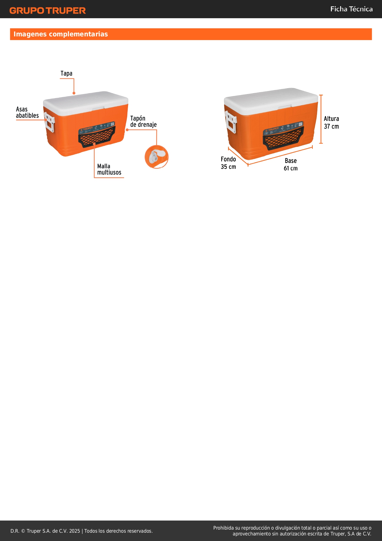 - Hielera de 46 L, Truper