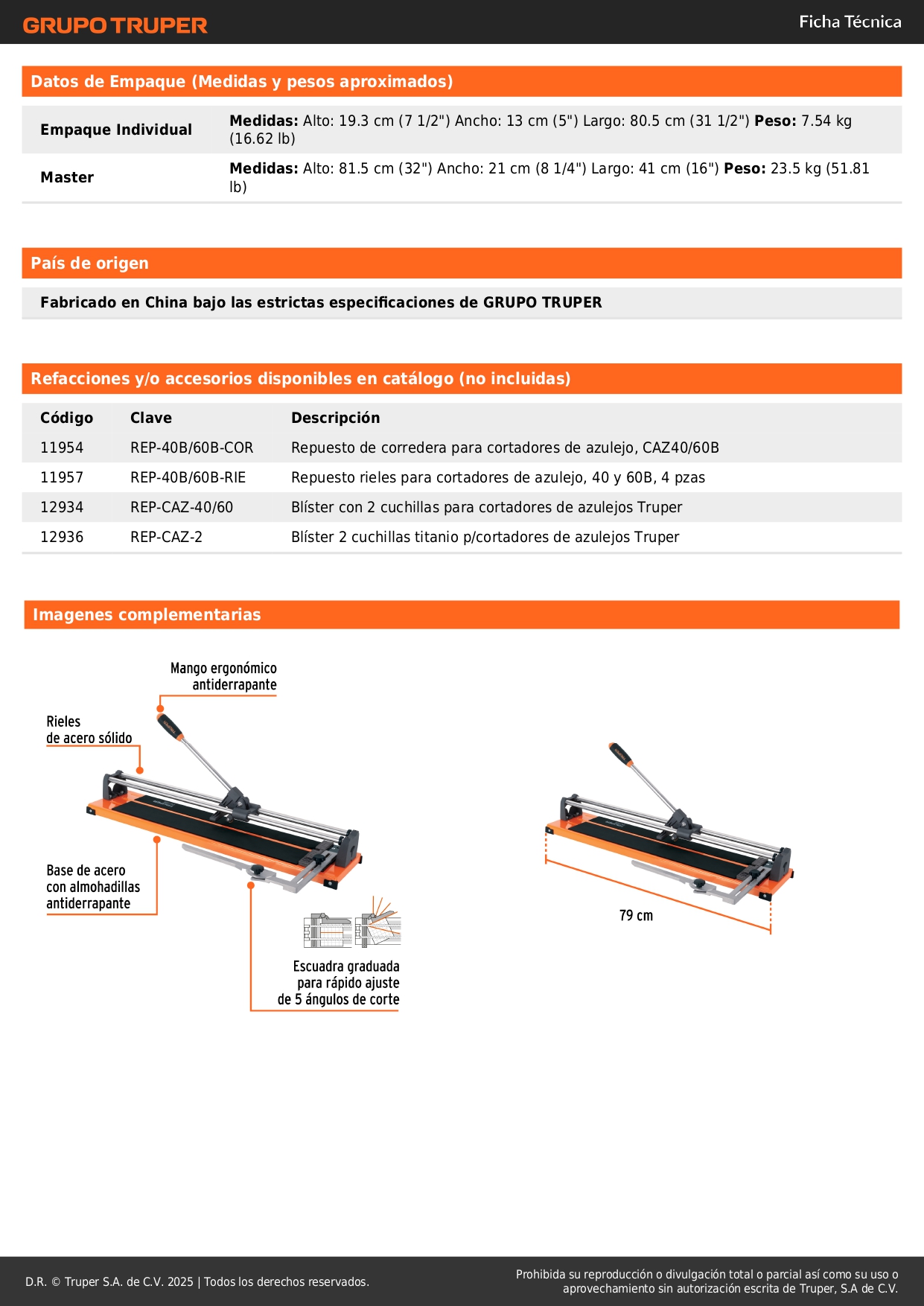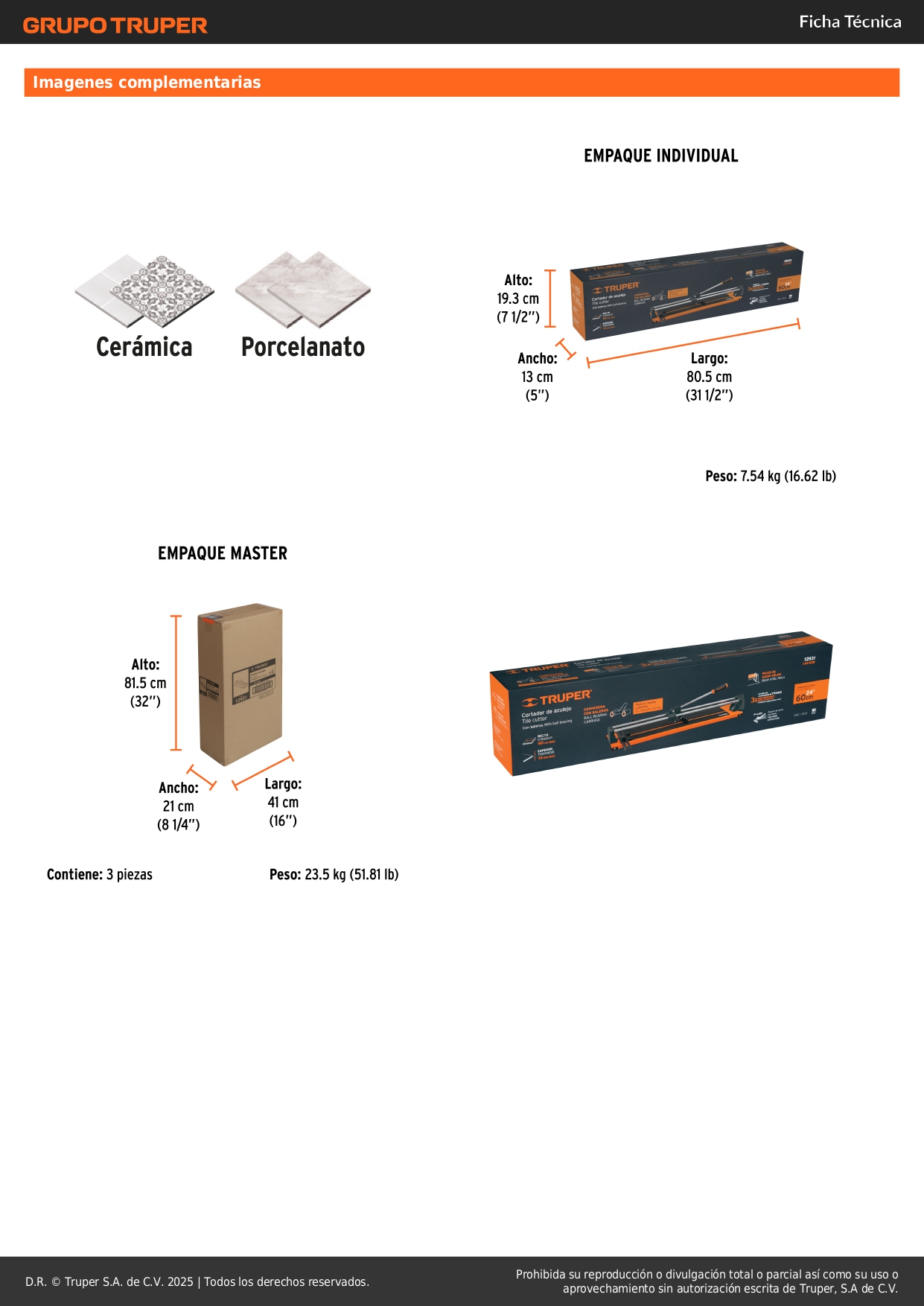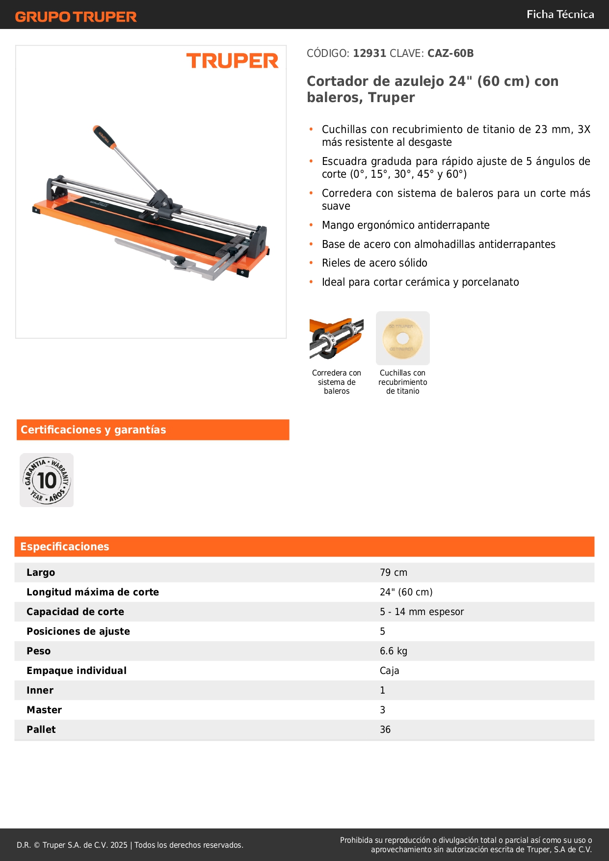 Cortador de mayólica 24" 60 cm con rodajes Truper
