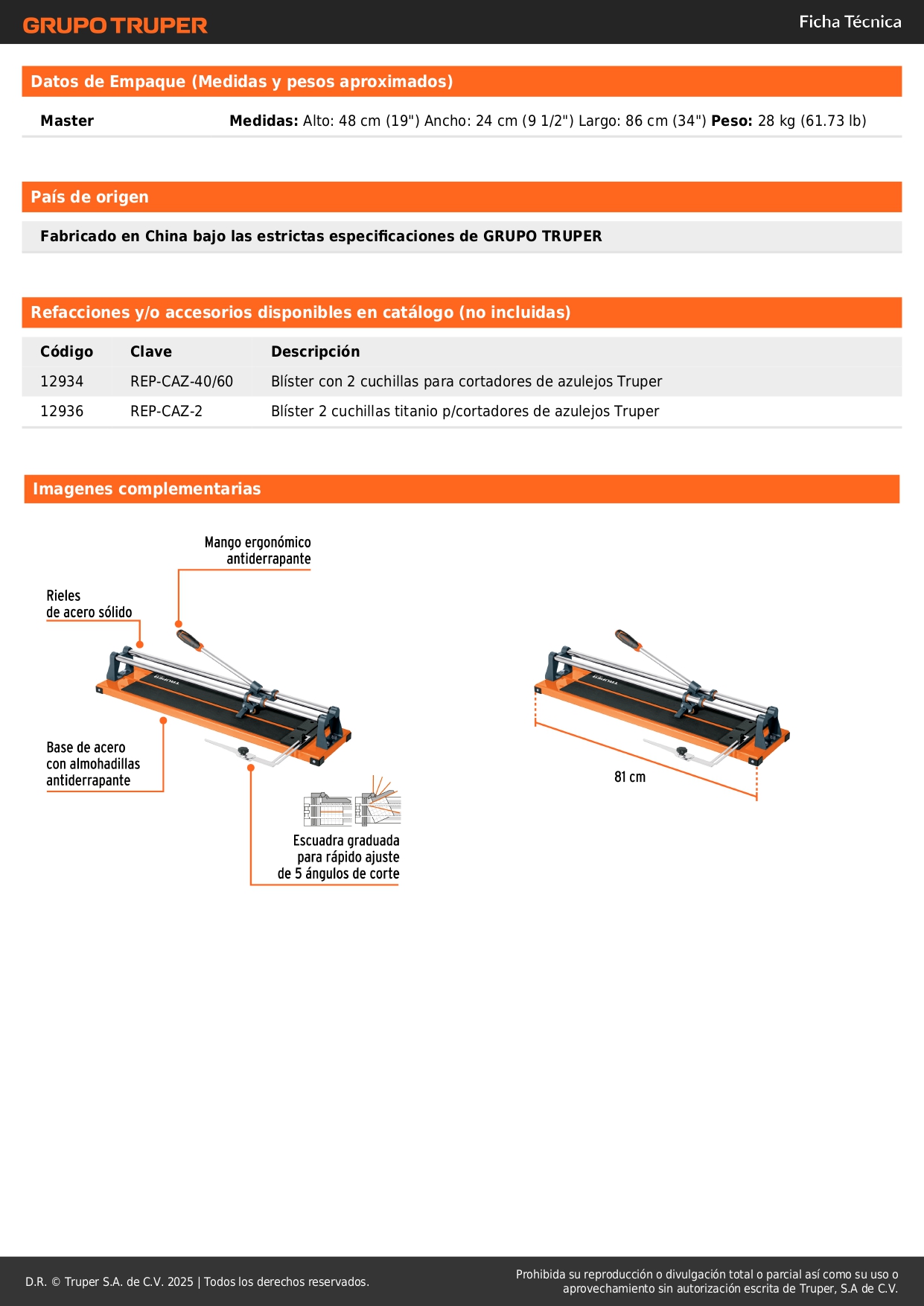 Cortador de mayólica de 24" (60cm) Truper