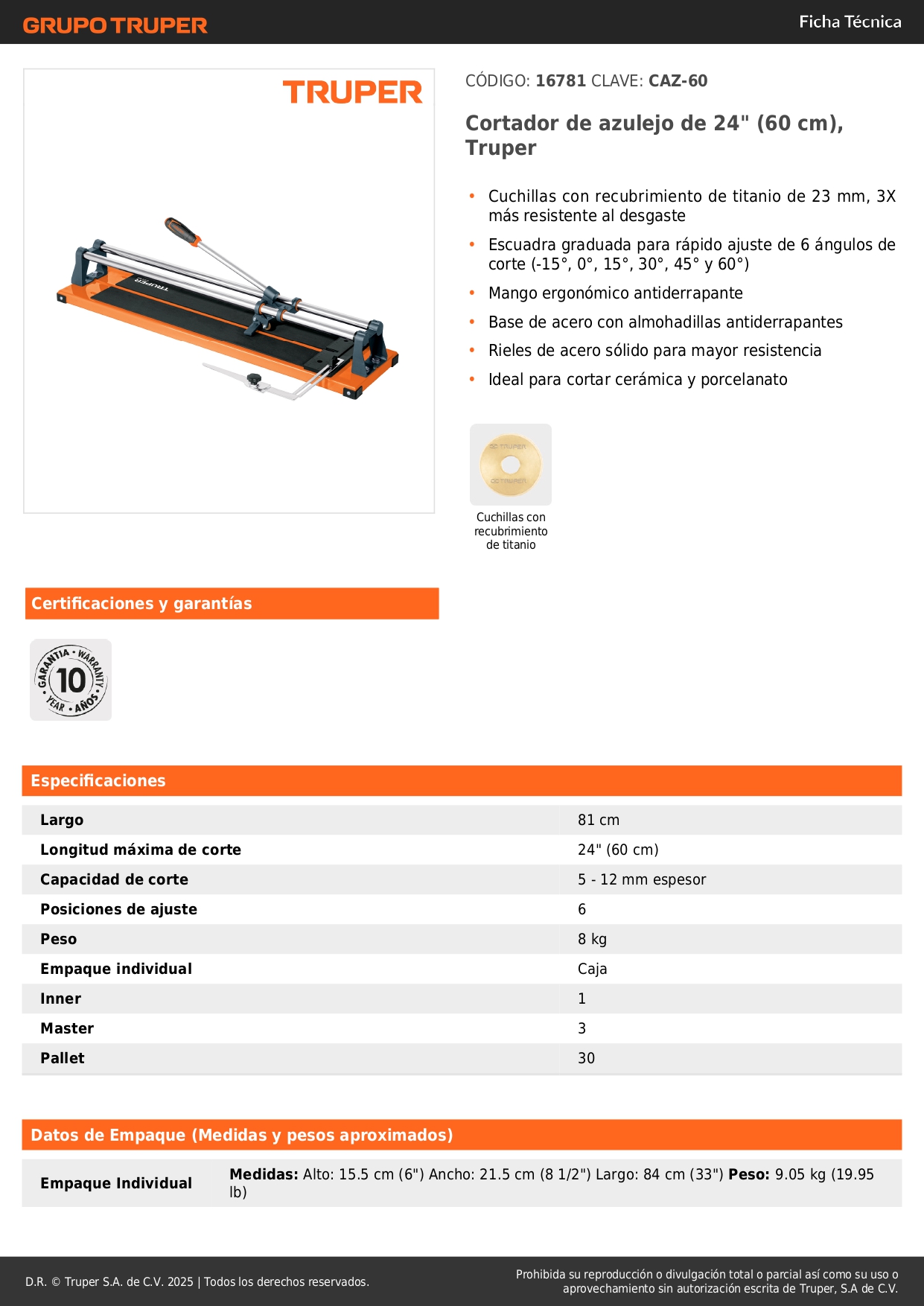 Longitud maxima de corte 24" (60 cm)