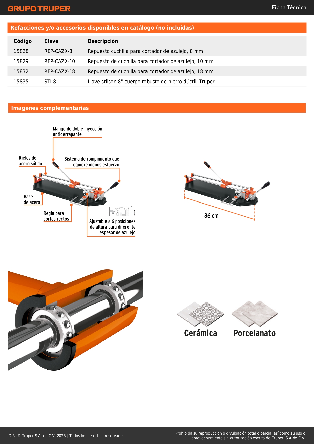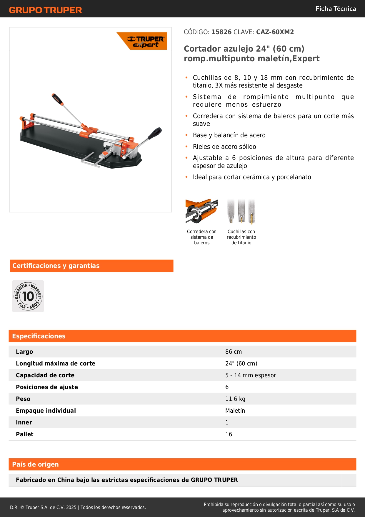 Cortador de mayolicas profesionales 58 cm con sistema de rompimiento multipunto con maletin Truper