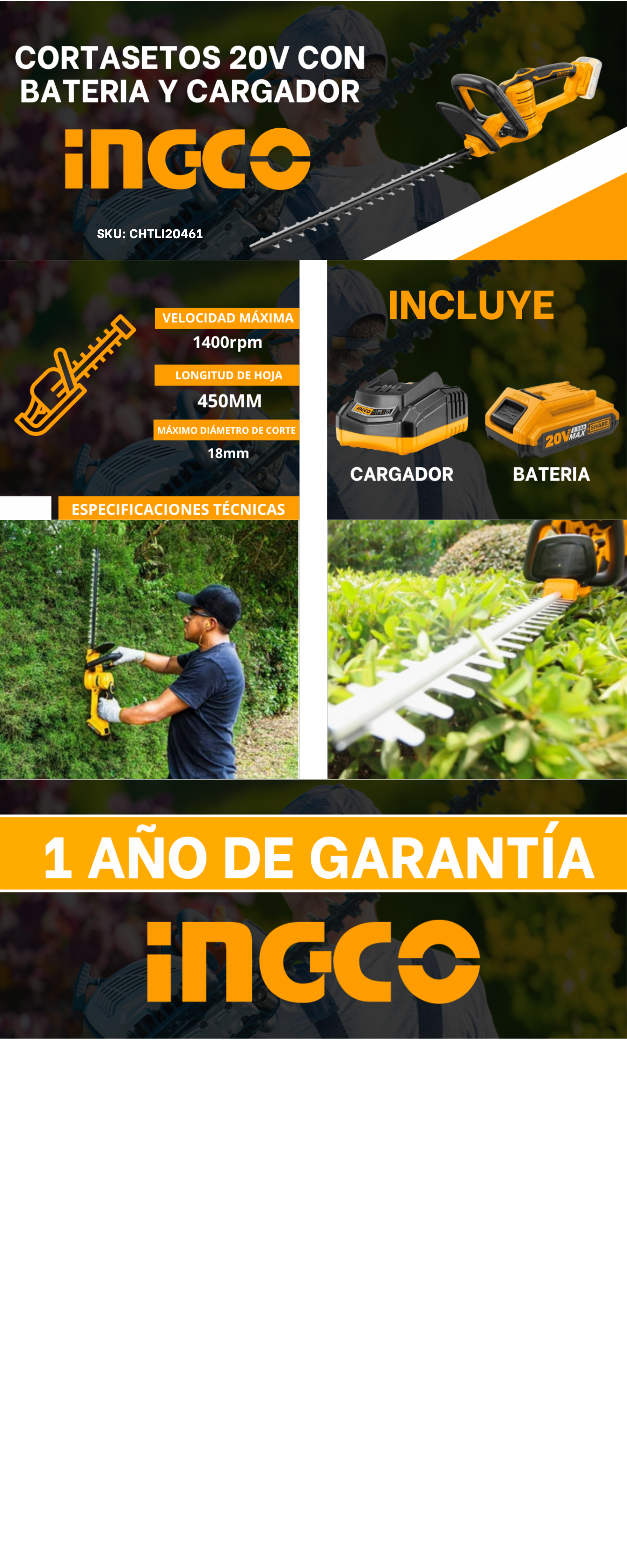 INGCO Tools se dedica a la fabricación de herramientas de la más ALTA calidad, pero al alcance de los TODOS. INGCO Garantiza al comprador que ninguna de las herramientas eléctricas comercializadas presenta defectos de diseño, materiales, construcción, embalaje o información y que ofrece las condiciones de idoneidad, calidad y seguridad exigibles al tipo de producto entregado.