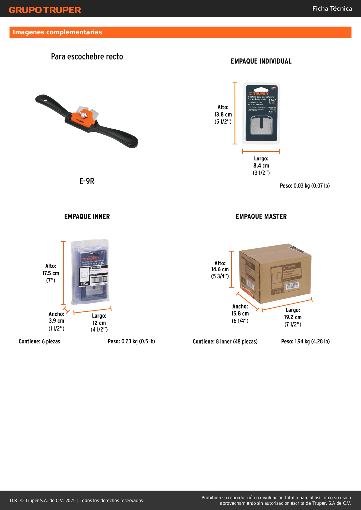 Cuchilla de respuesto para E-9R, Truper Stock por sucursal Stock por sucursal S/ 6.40 cantidad Agregar al carro Avísame cuando llegue -Espesor de chuchilla: 2 mm-Para escochebre modelo E-9R marca Truper®