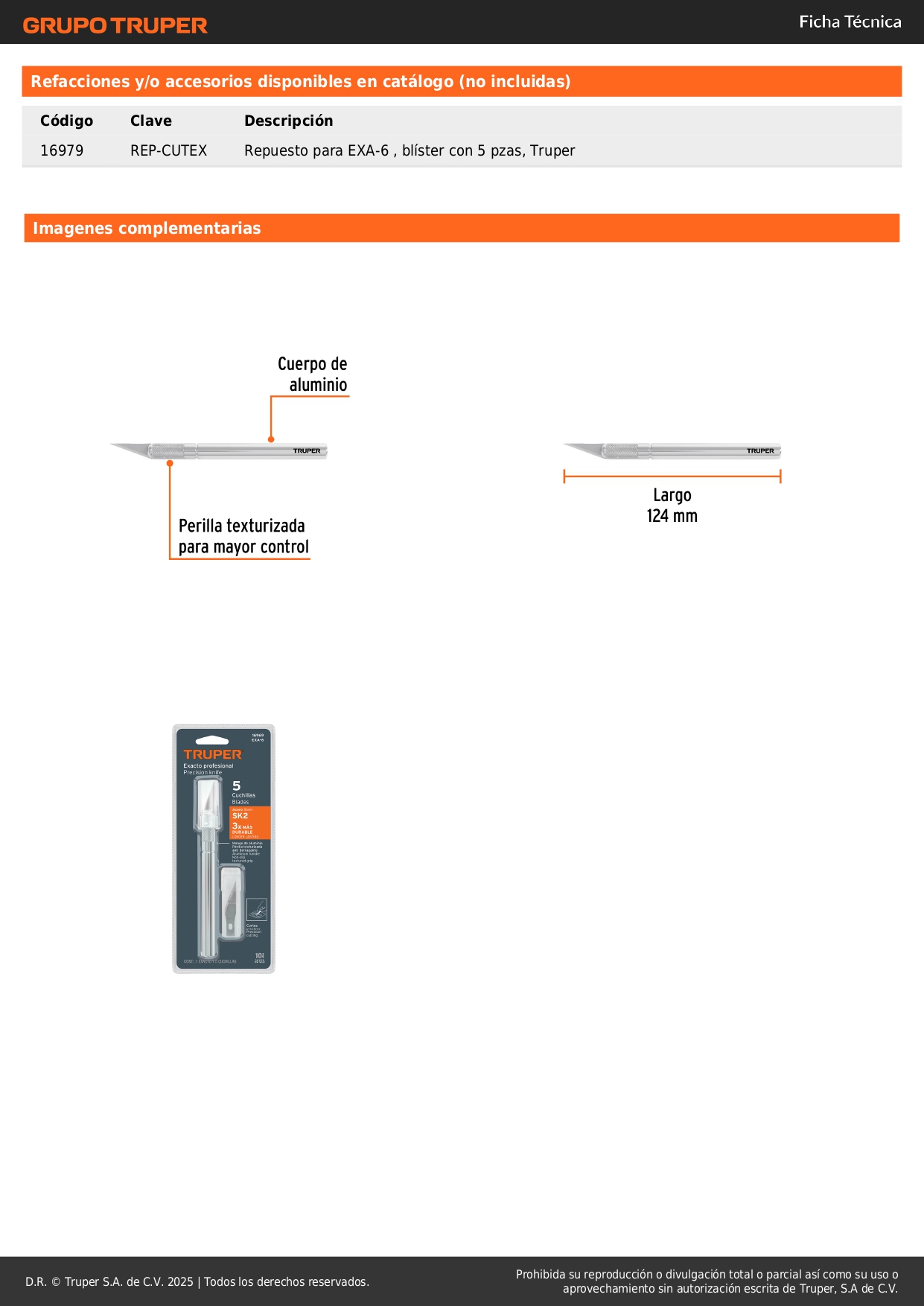 - Cuerpo de aluminio con perilla texturizada para mayor control.