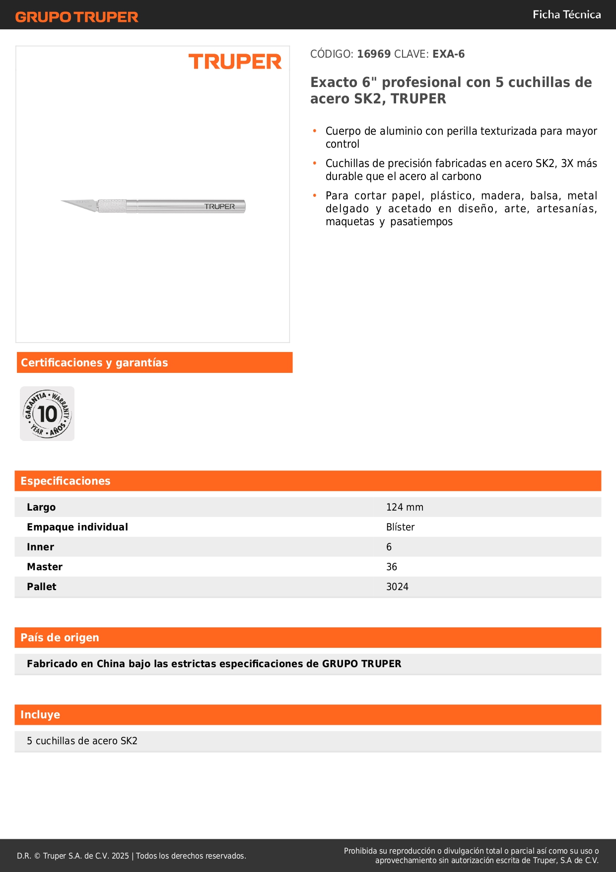 Cuchilla profesional 6" con 5 navajas de acero SK5 Truper