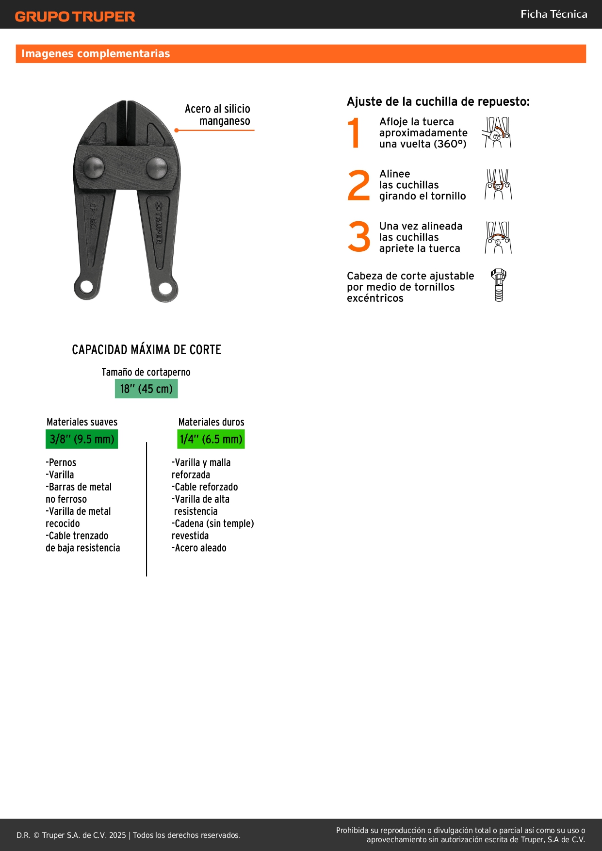 Capacidad máxima de corte Materiales suaves 3/8" (9.5 mm) | Materiales duros 1/4" (6.5 mm)