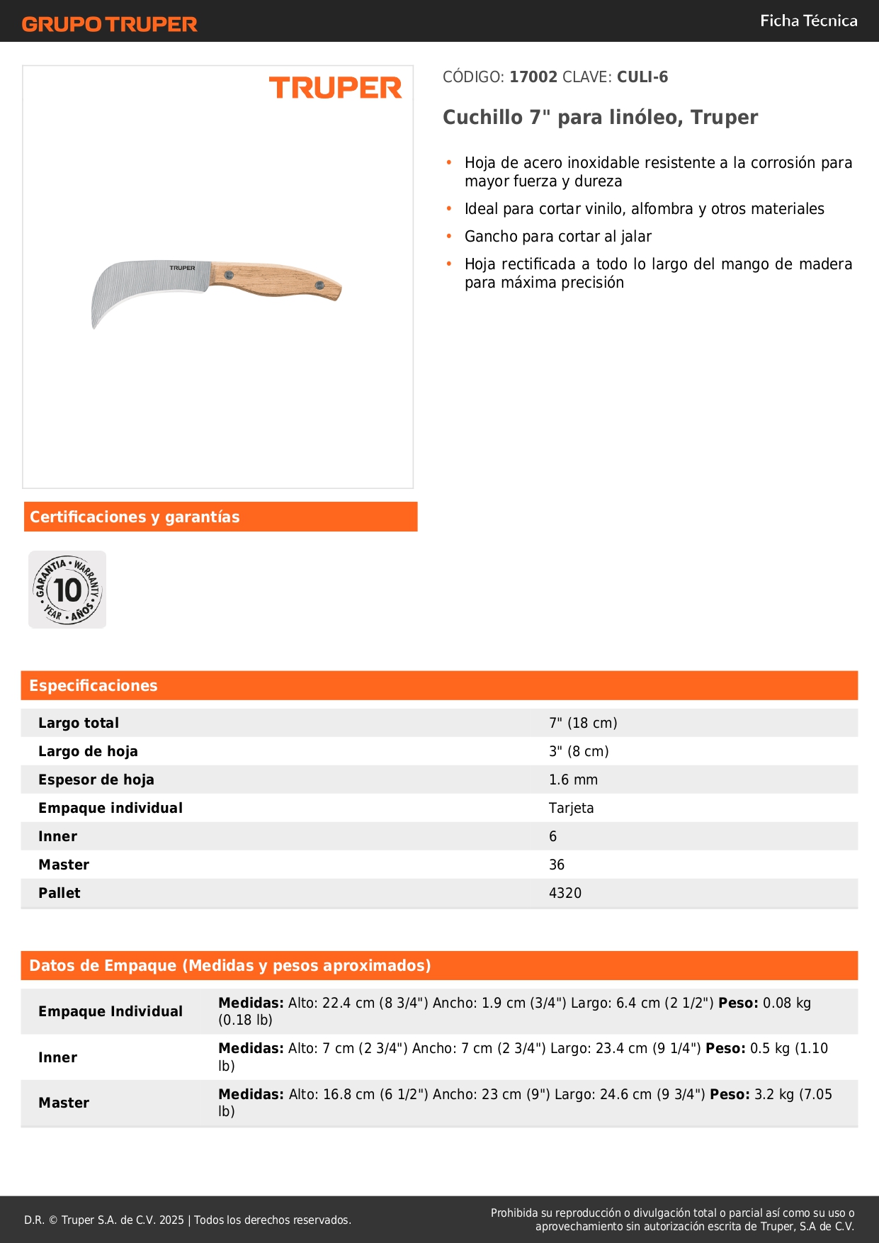 Cuchillo 7" para alfombras Truper