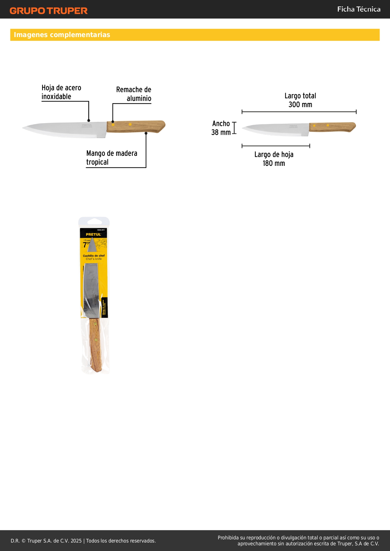Cuchillo de chef 7´´ mango de madera Pretul Stock por sucursal Stock por sucursal S/ 8.00 cantidad Agregar al carro Avísame cuando llegue Hojas de acero inoxidable.Mangos de madera.