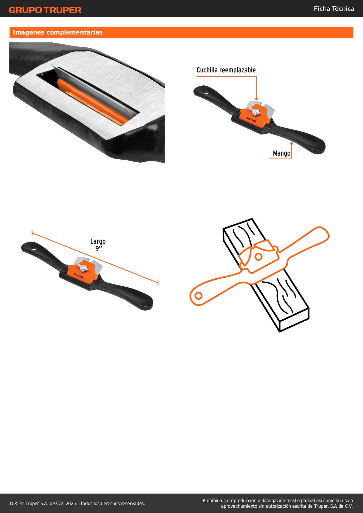 • Cuchilla de acero al alto carbono para mayor tiempo de vida