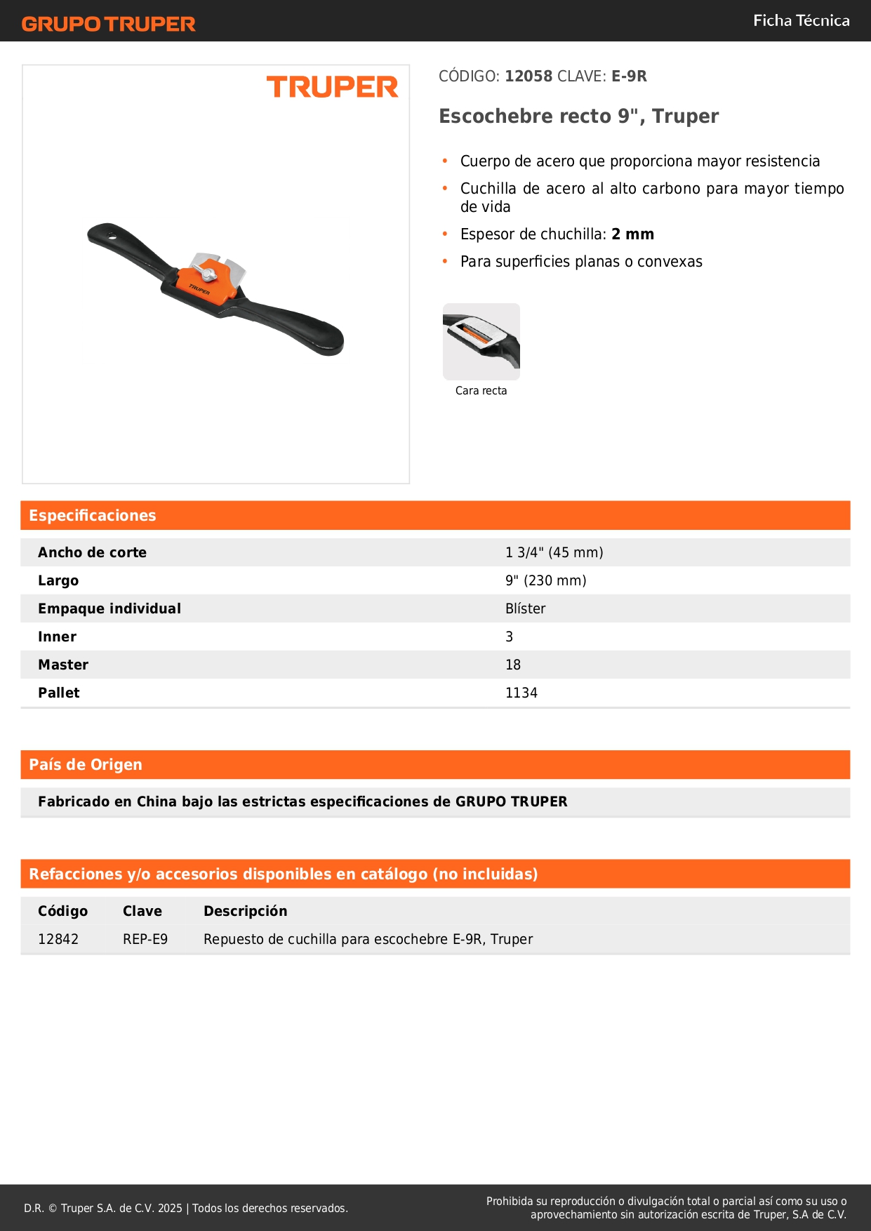 • Espesor de chuchilla: 2 mm