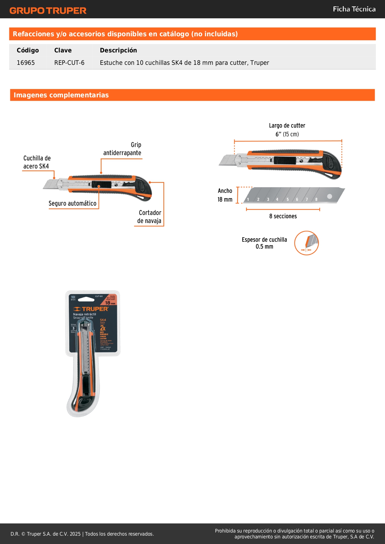 Cutter 18 mm profesional con alma metálica y grip, Truper