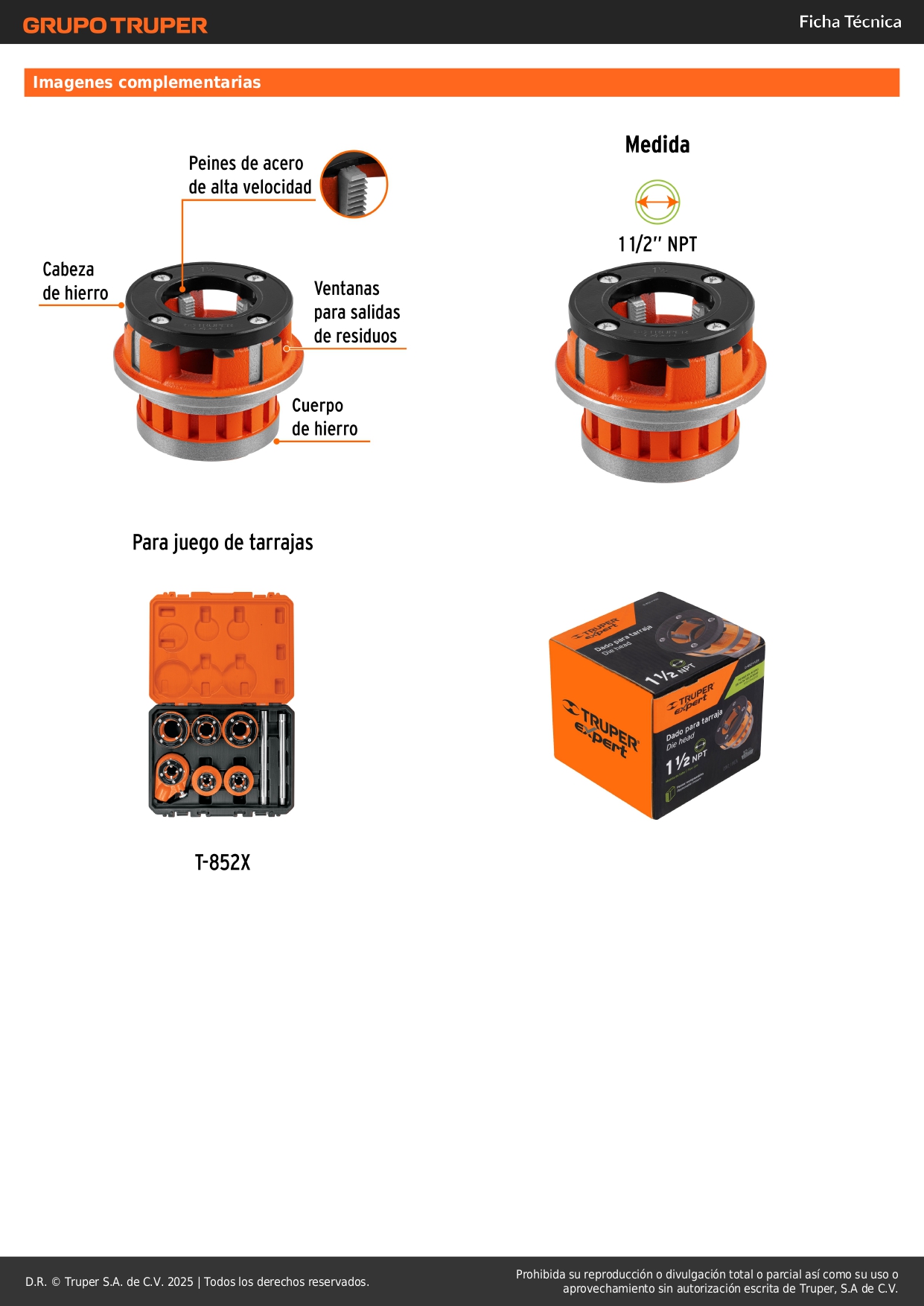 -Para juego de tarraja modelo T-852X Truper® Expert