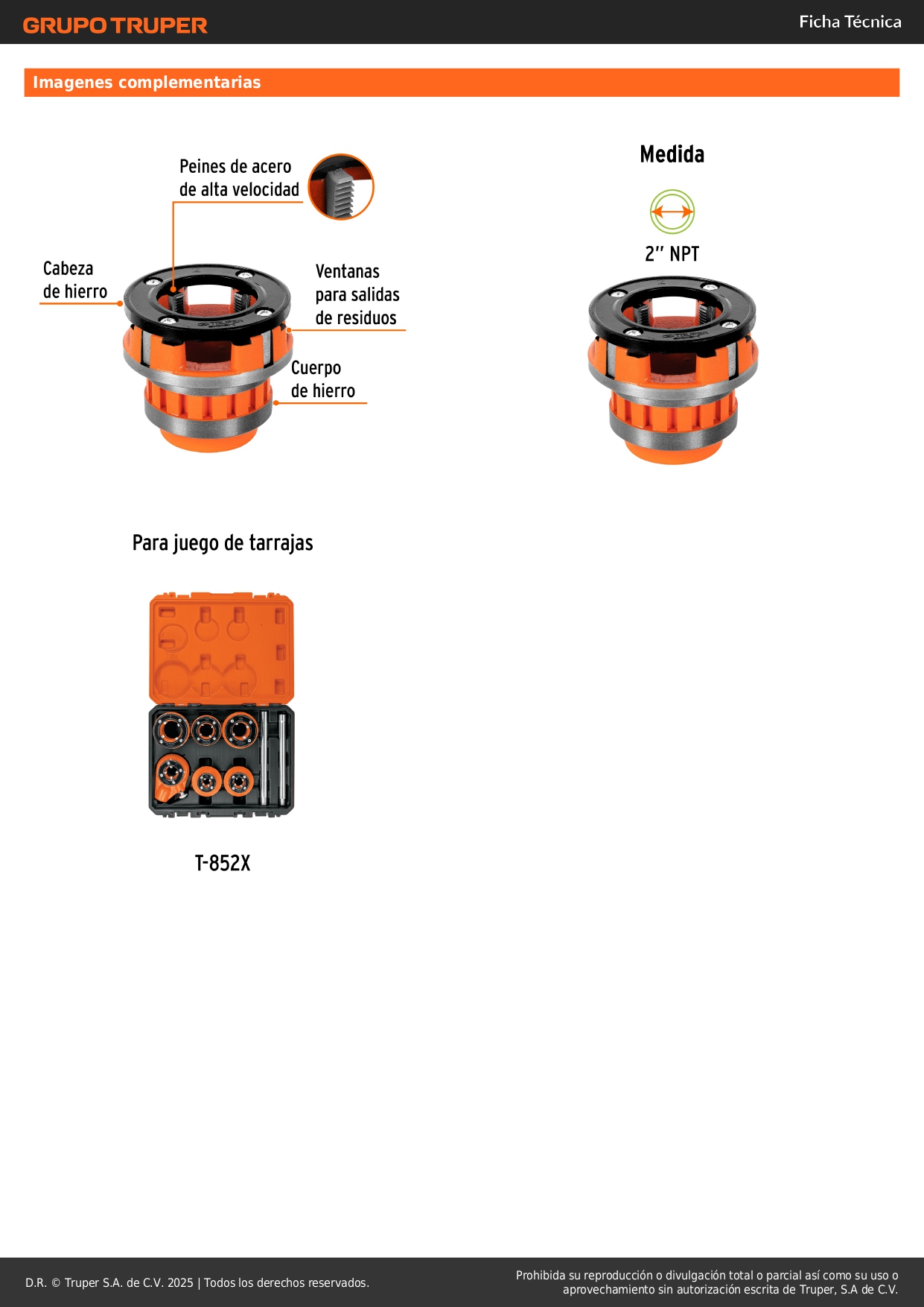 -Para juego de tarraja modelo T-852X Truper® Expert