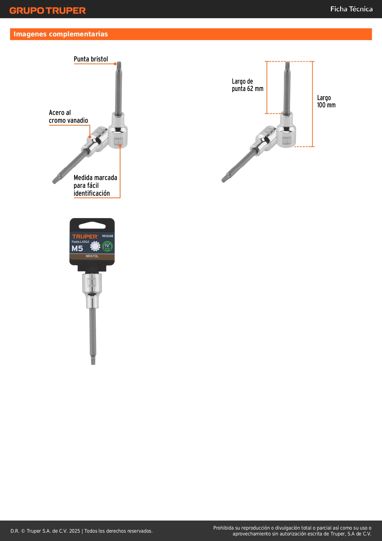 Dado encastre 1/2'' punta larga bristol m5 Truper