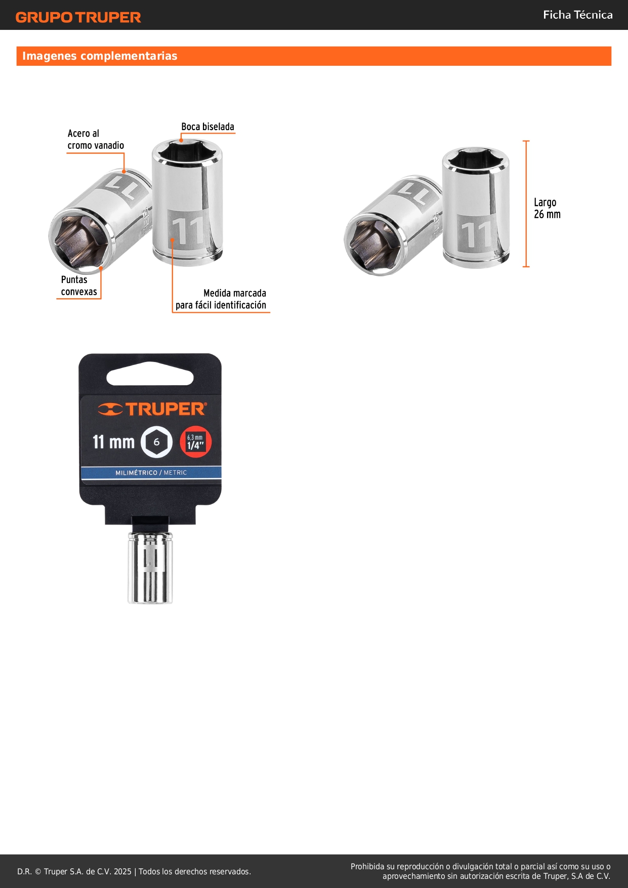 Dado hexagonal encastre 1/4'' de 11 mm. truper
