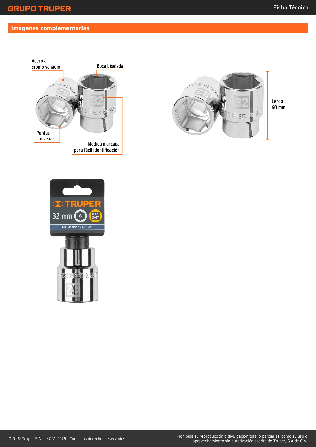Dado hexagonal encastre 3/4´´ de 32 mm, Truper