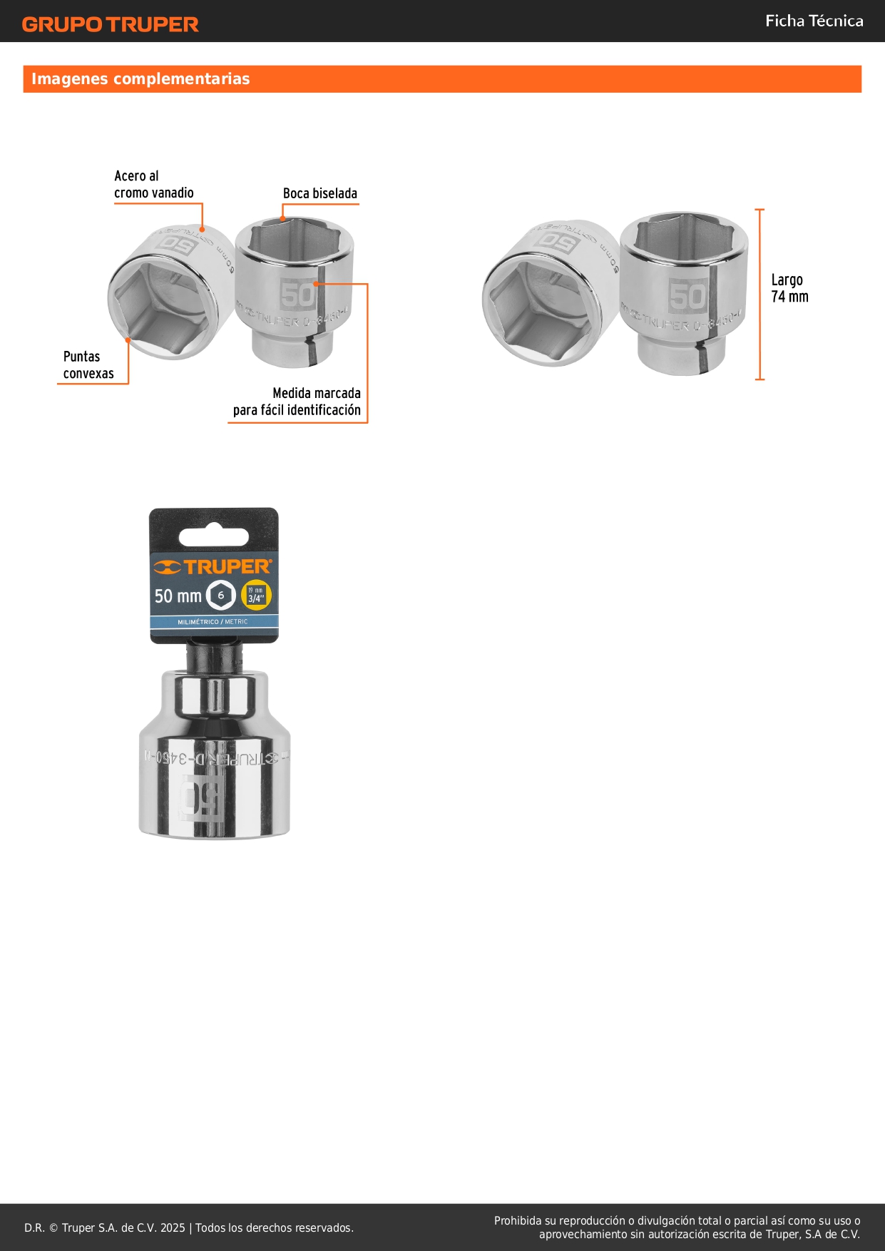 Dado hexagonal encastre 3/4´´ de 50 mm, Truper
