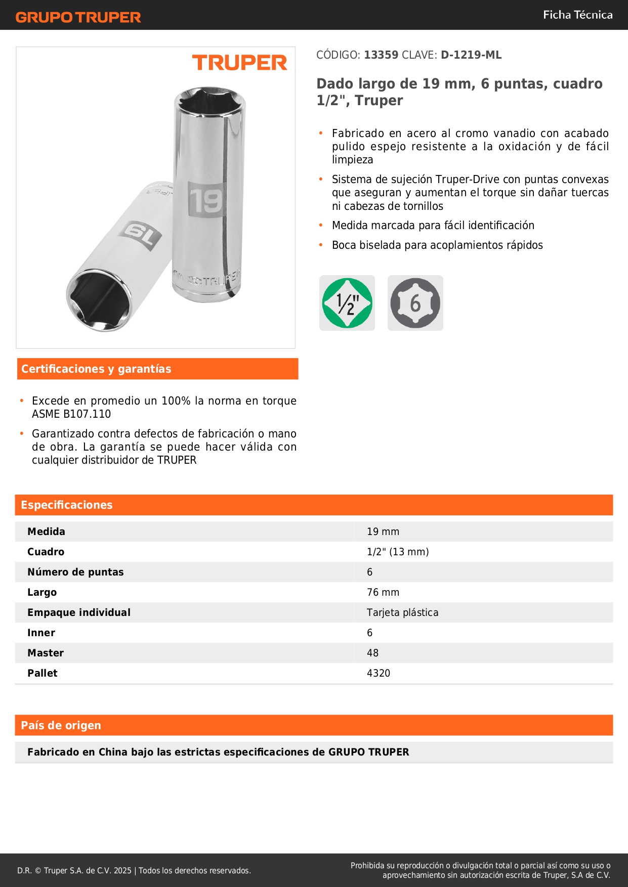 -Sistema de sujeción Truper-Drive con puntas convexas que aseguran y aumentan el torque sin dañar tuercas ni cabezas de tornillos