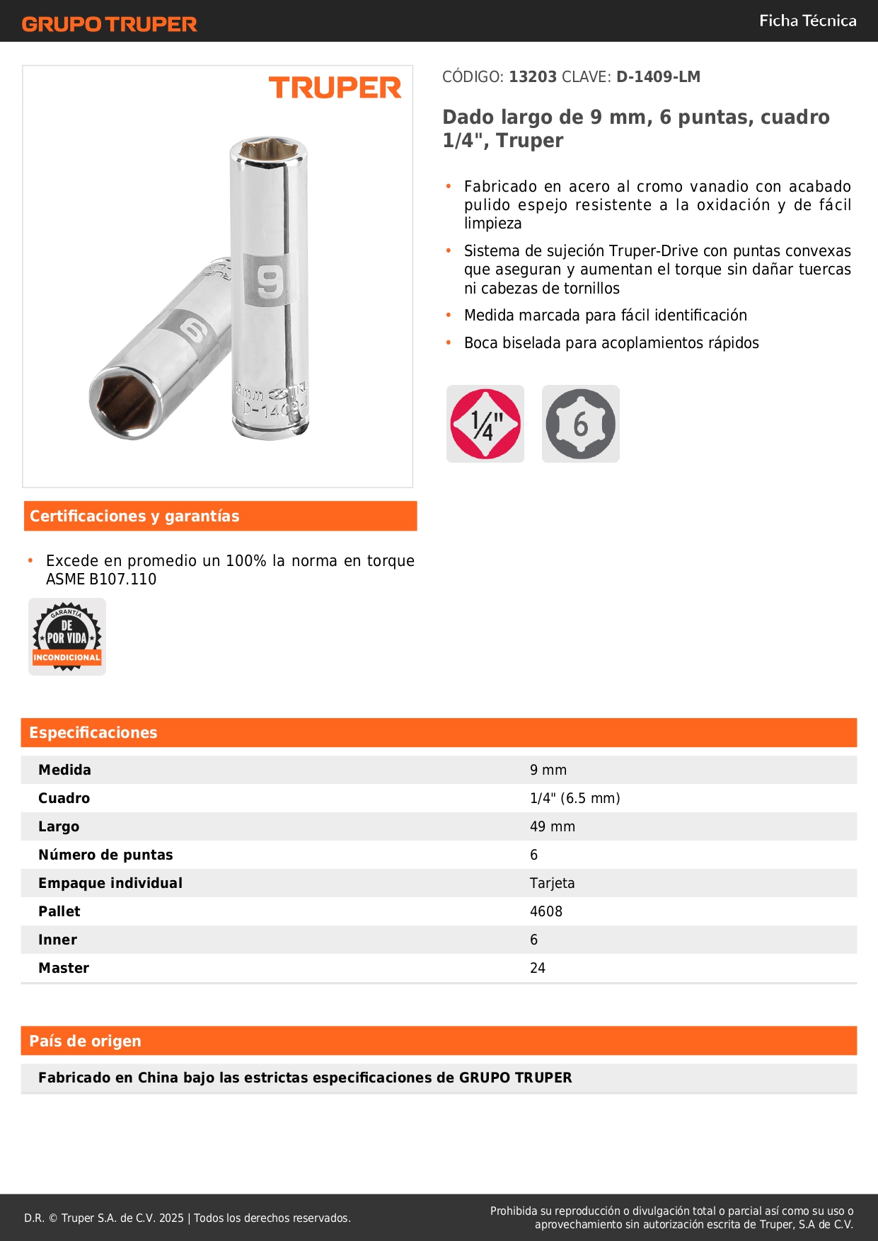 -Sistema de sujeción Truper-Drive con puntas convexas que aseguran y aumentan el torque sin dañar tuercas ni cabezas de tornillos