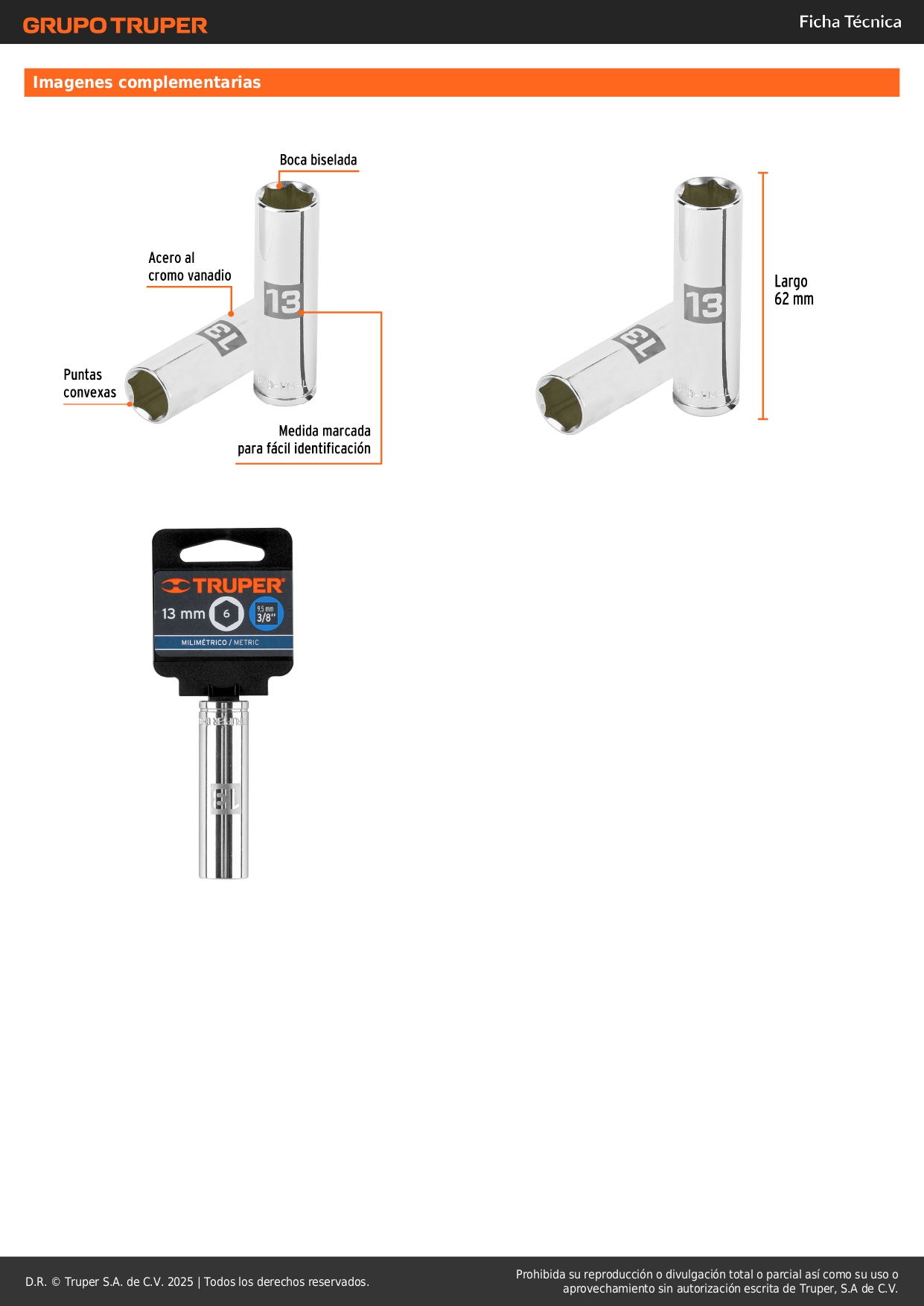 -Sistema de sujeción Truper-Drive con puntas convexas que aseguran y aumentan el torque sin dañar tuercas ni cabezas de tornillos