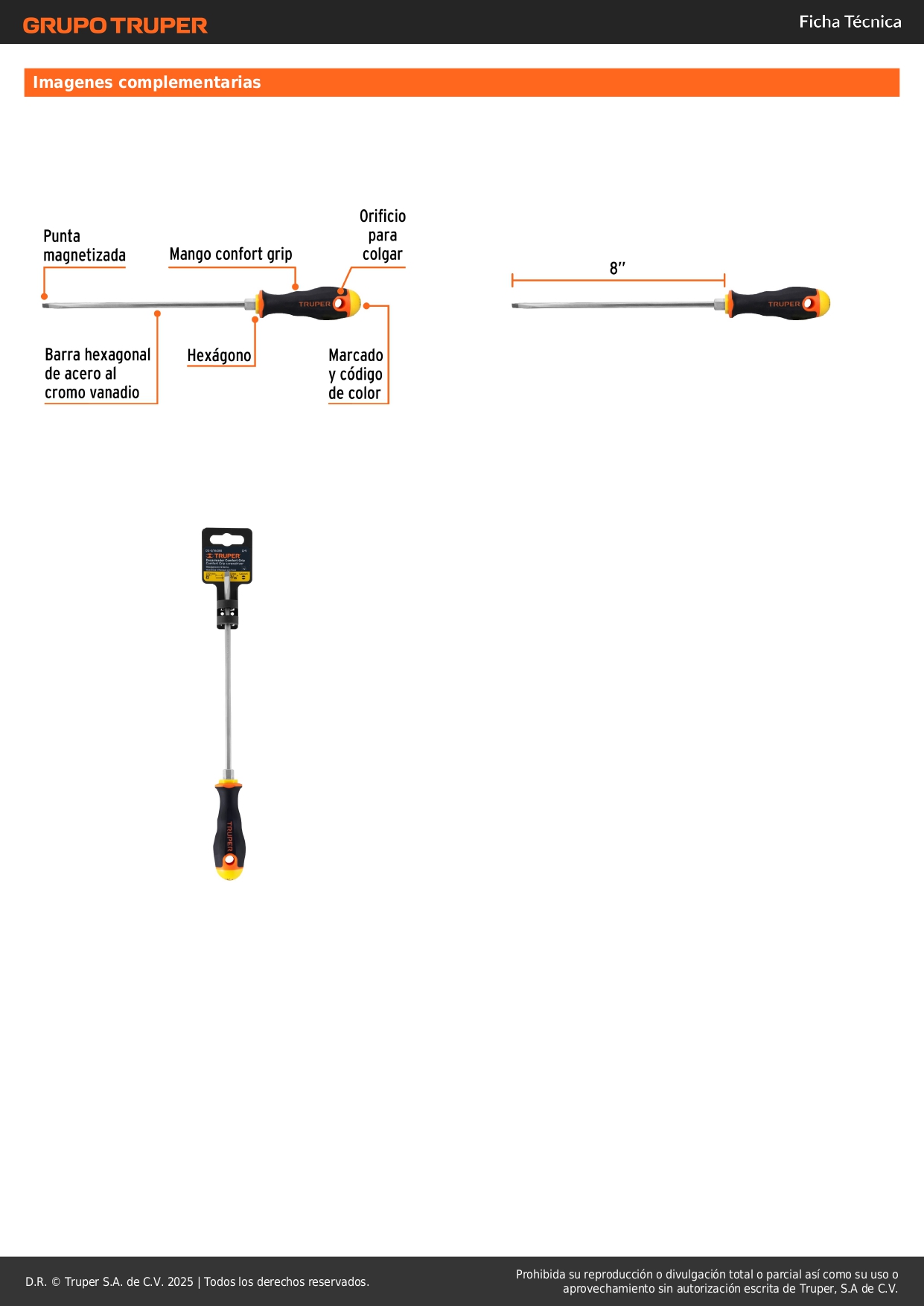 Desarmador cabinet 3/16´´ x 8´´ mango Comfort Grip, Truper