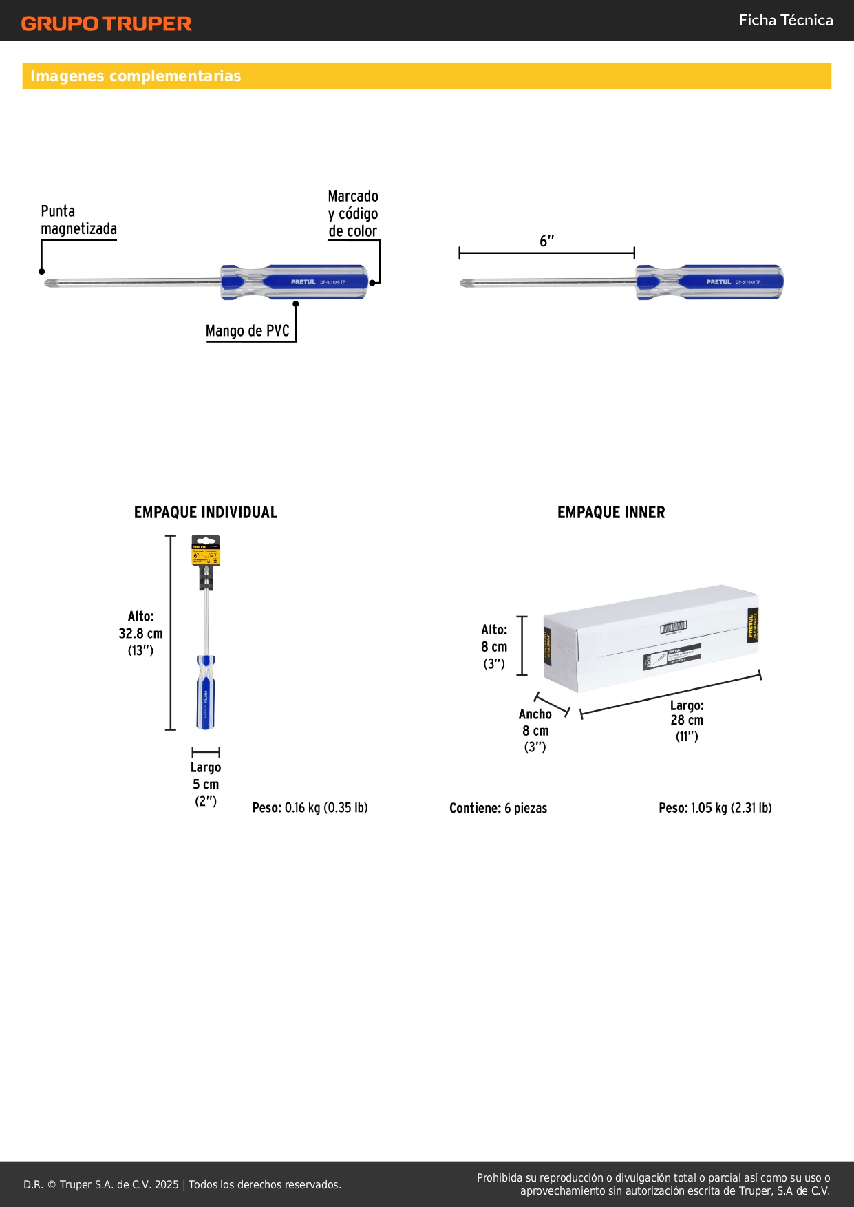 Desarmador de cruz 5/16 x 6´´ mango de PVC, Pretul