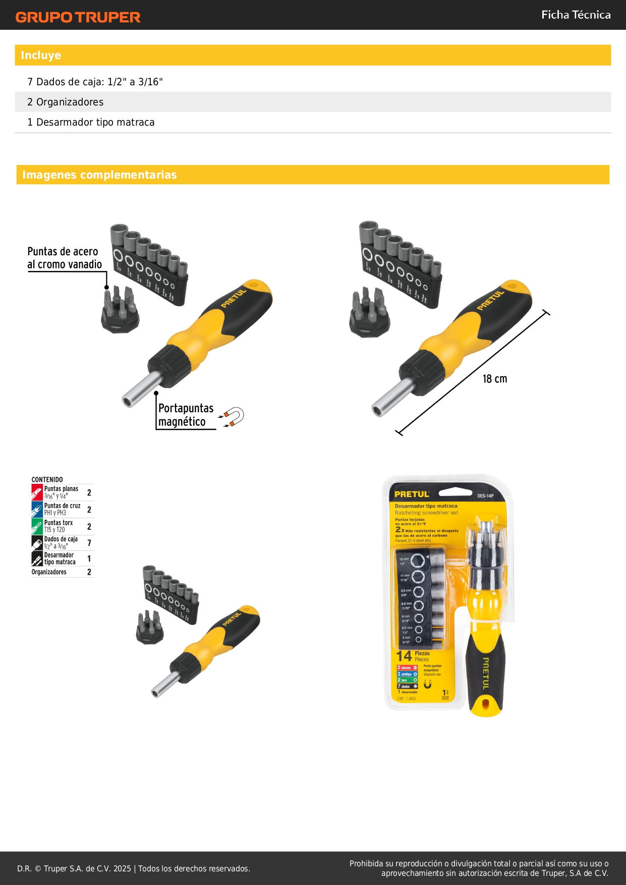 desarmador tipo rachet con 6 puntas y 7 dados