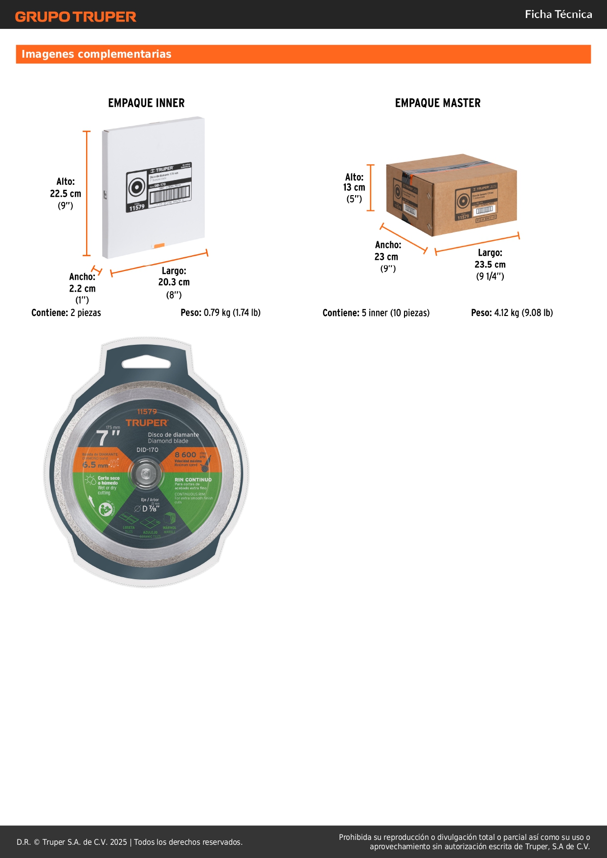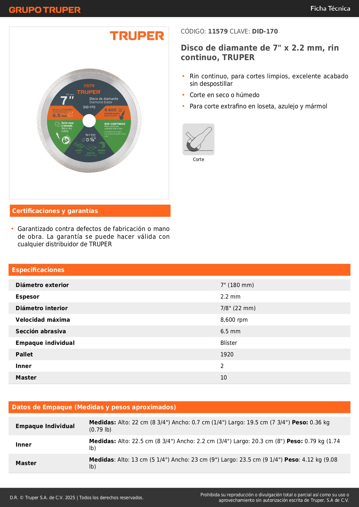 Disco diamantado de 7´´ x 2.2 mm rin continuo, Truper
