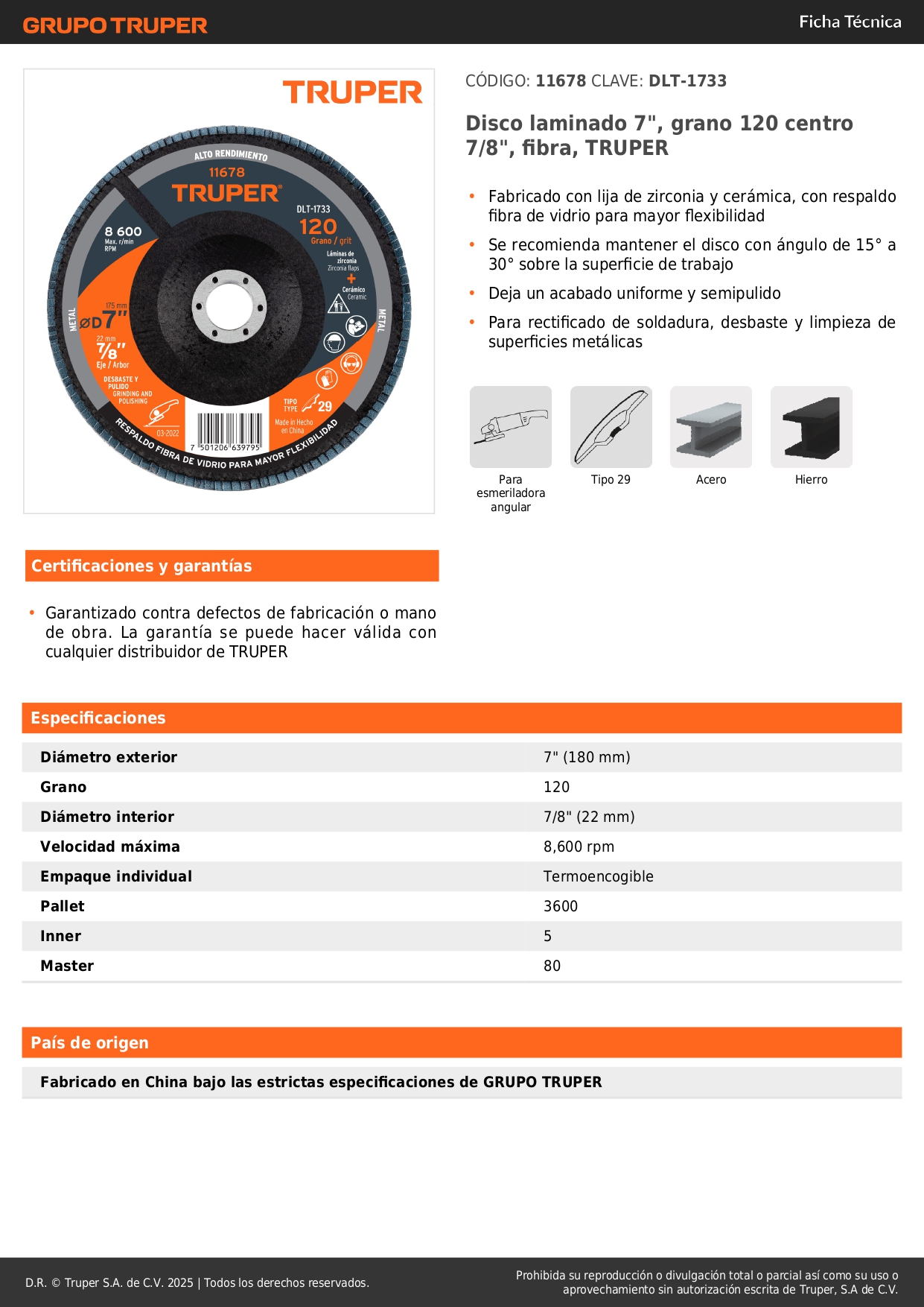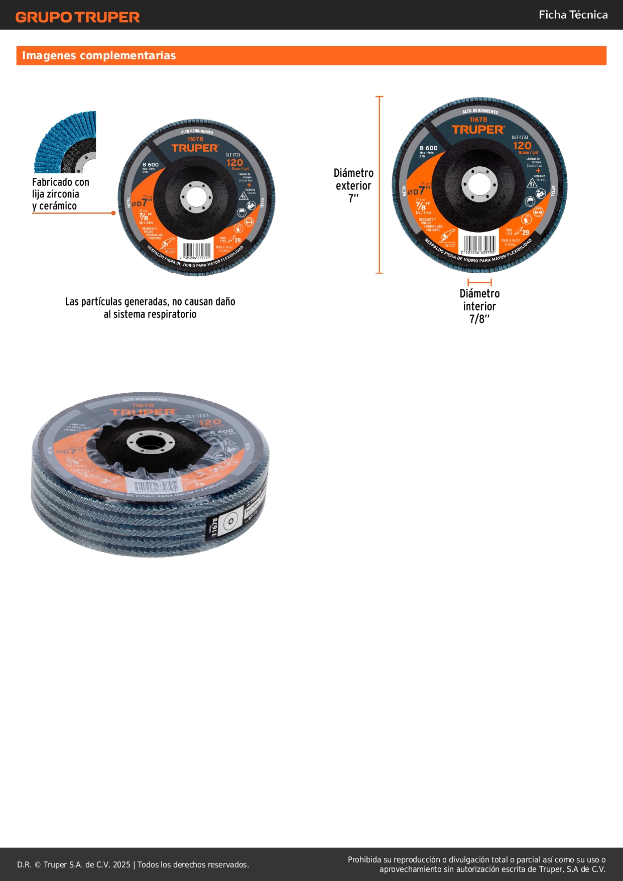 -Fabricado con lija de zirconia y cerámica, con respaldo fibra de vidrio para mayor flexibilidad